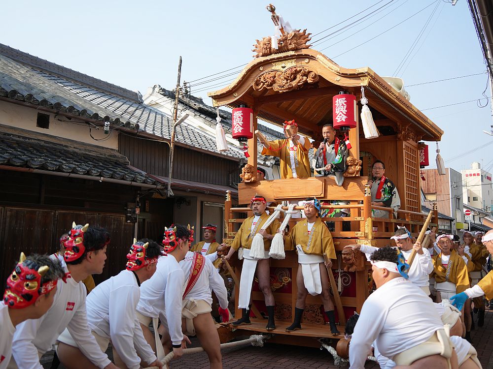 赤鬼青鬼のお面付けての曳行も素敵やし、