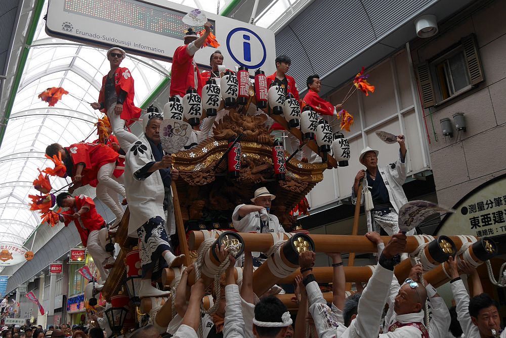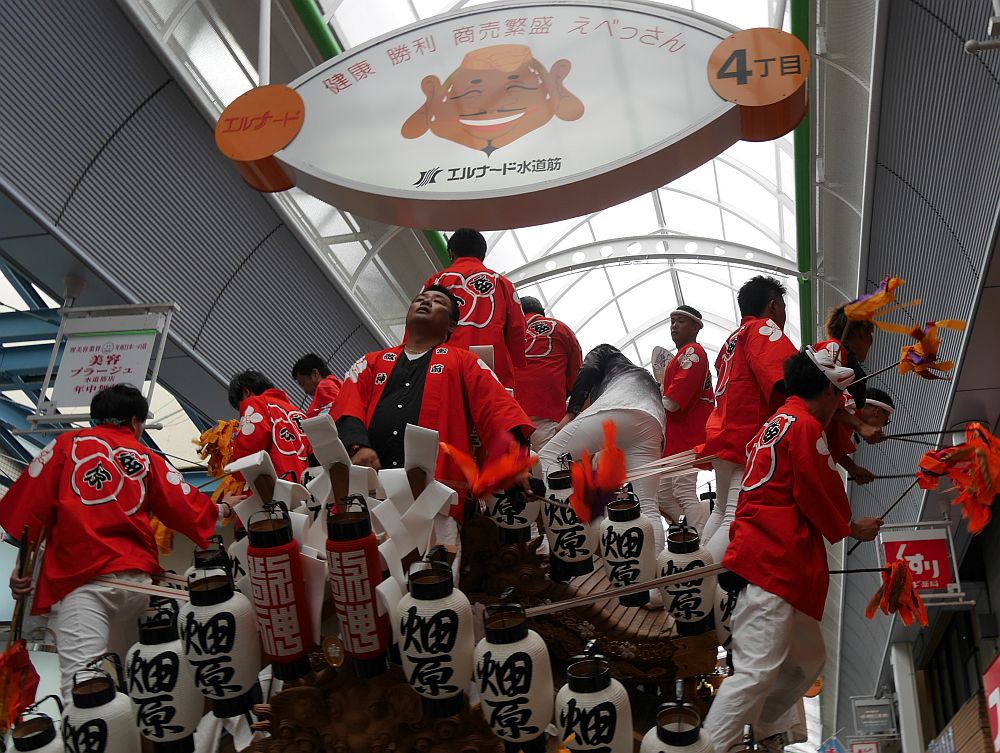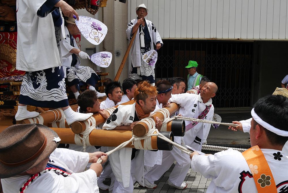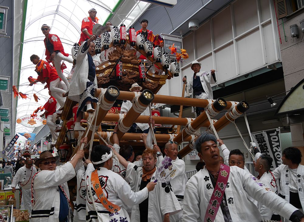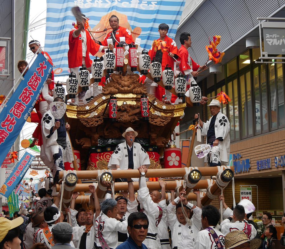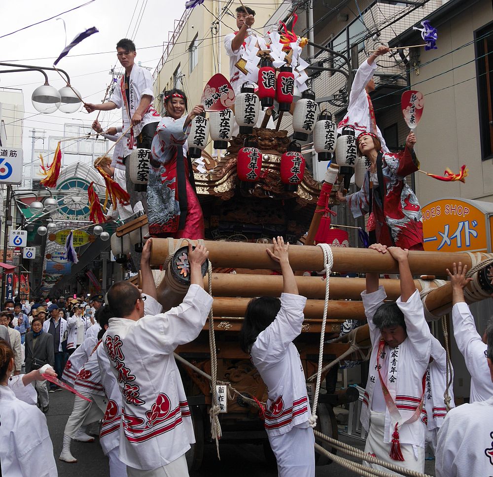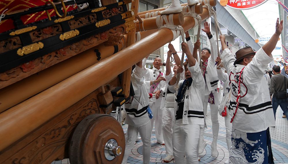 水道筋商店街を前を担ぎ上げながら進む畑原地車