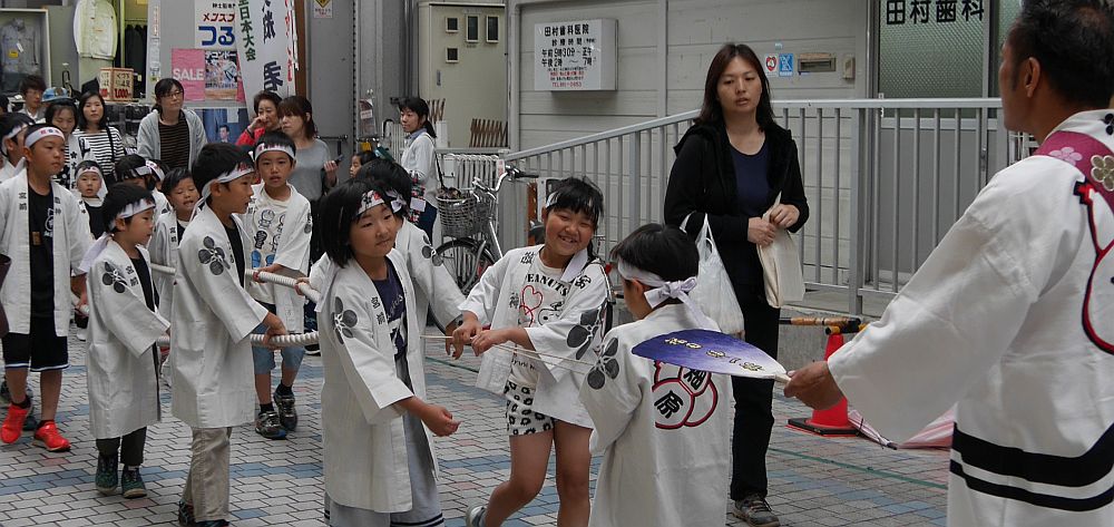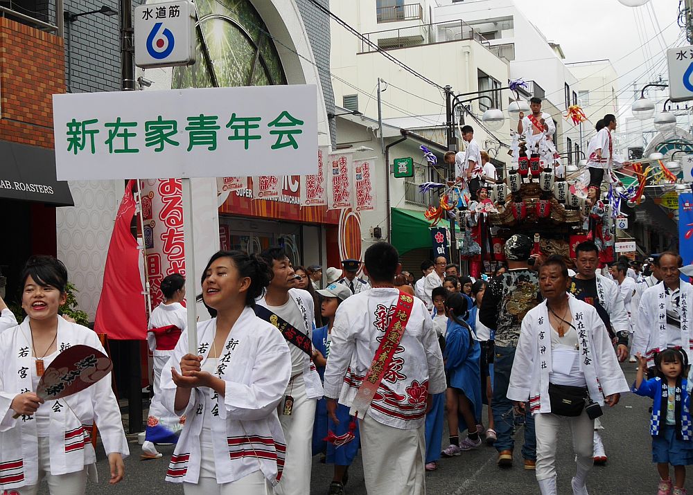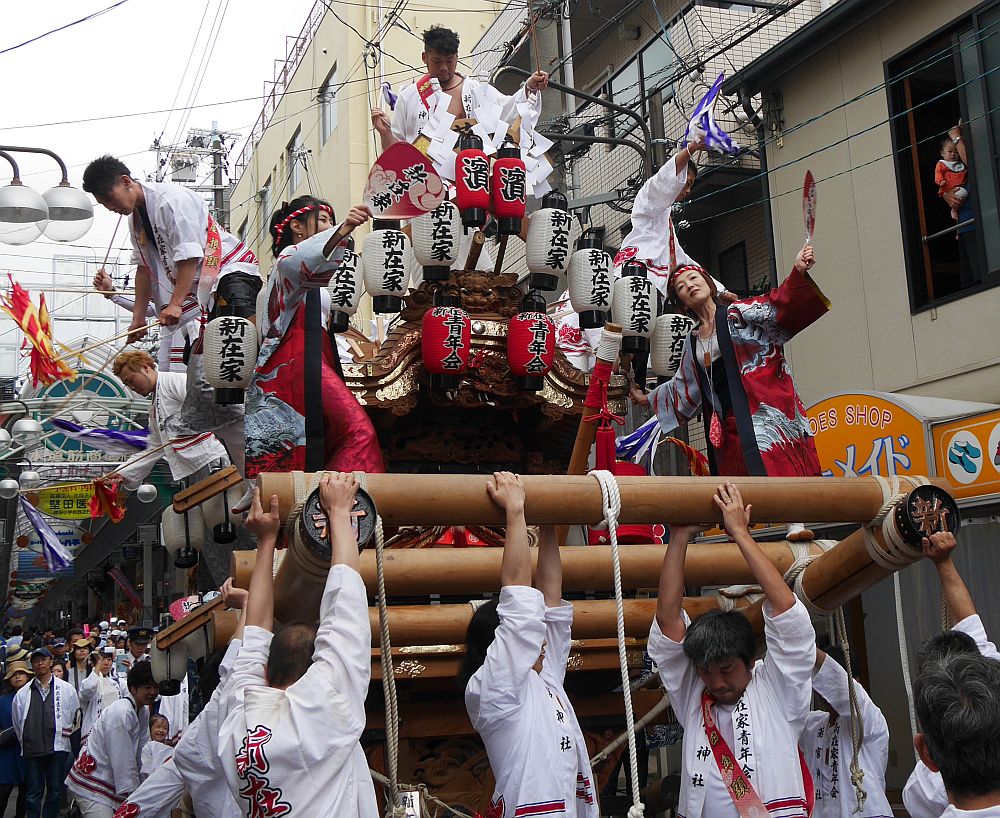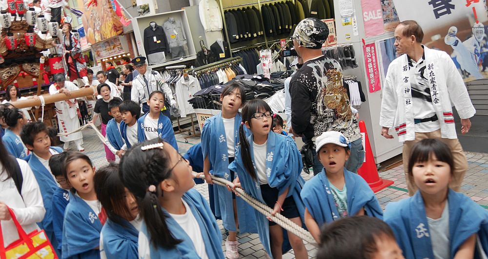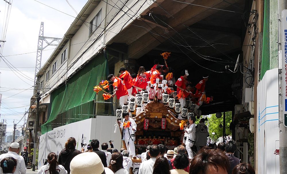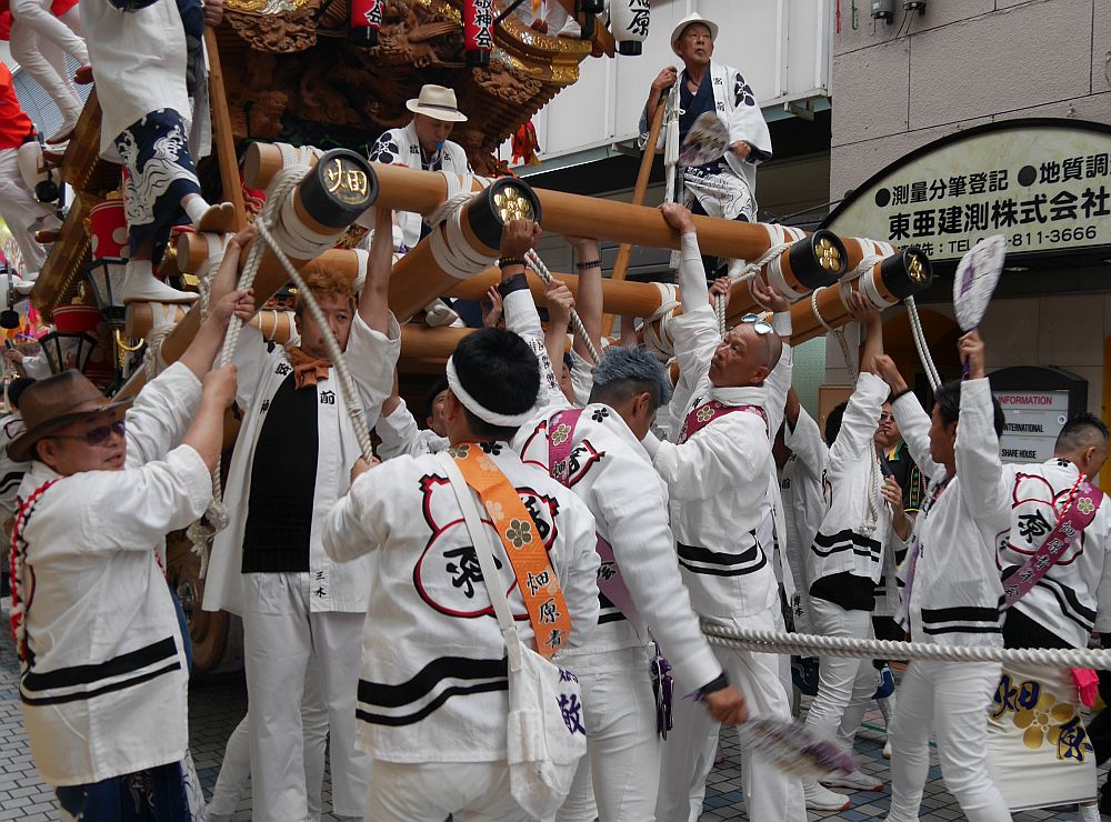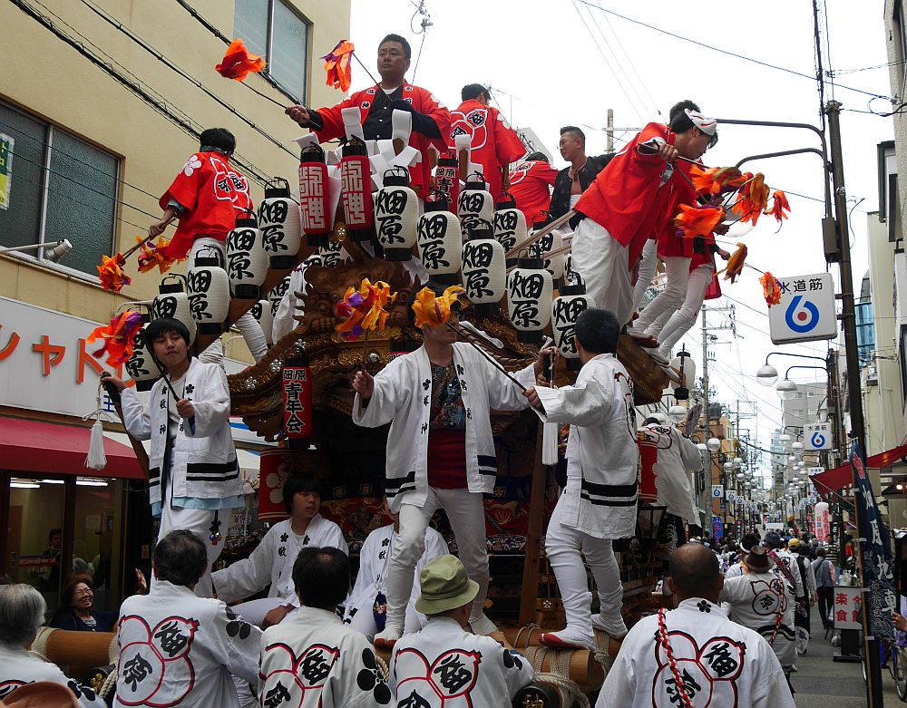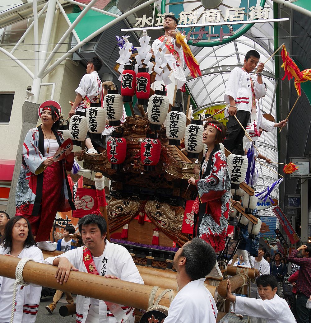 水道筋商店街を前を担ぎ上げながら進む畑原地車
