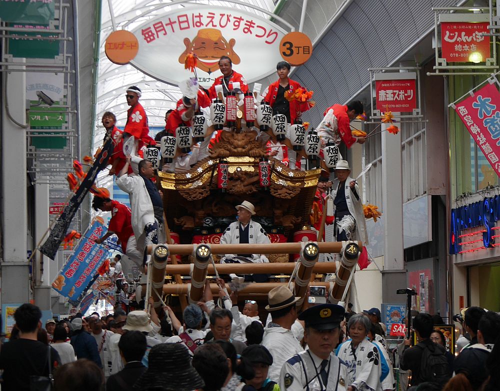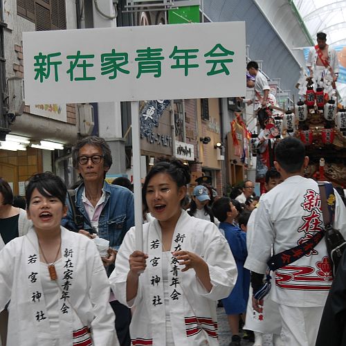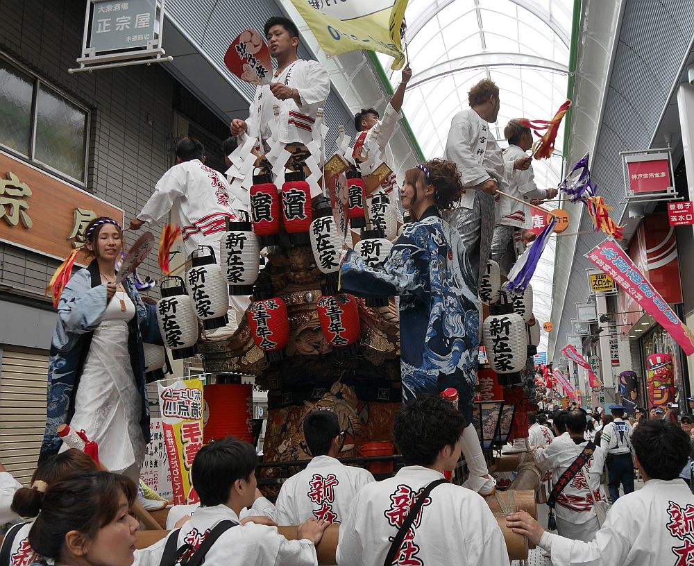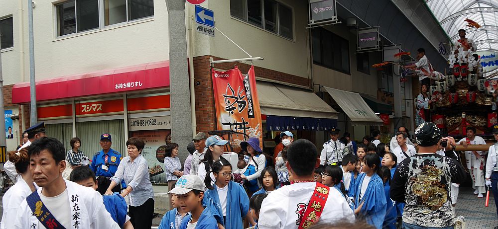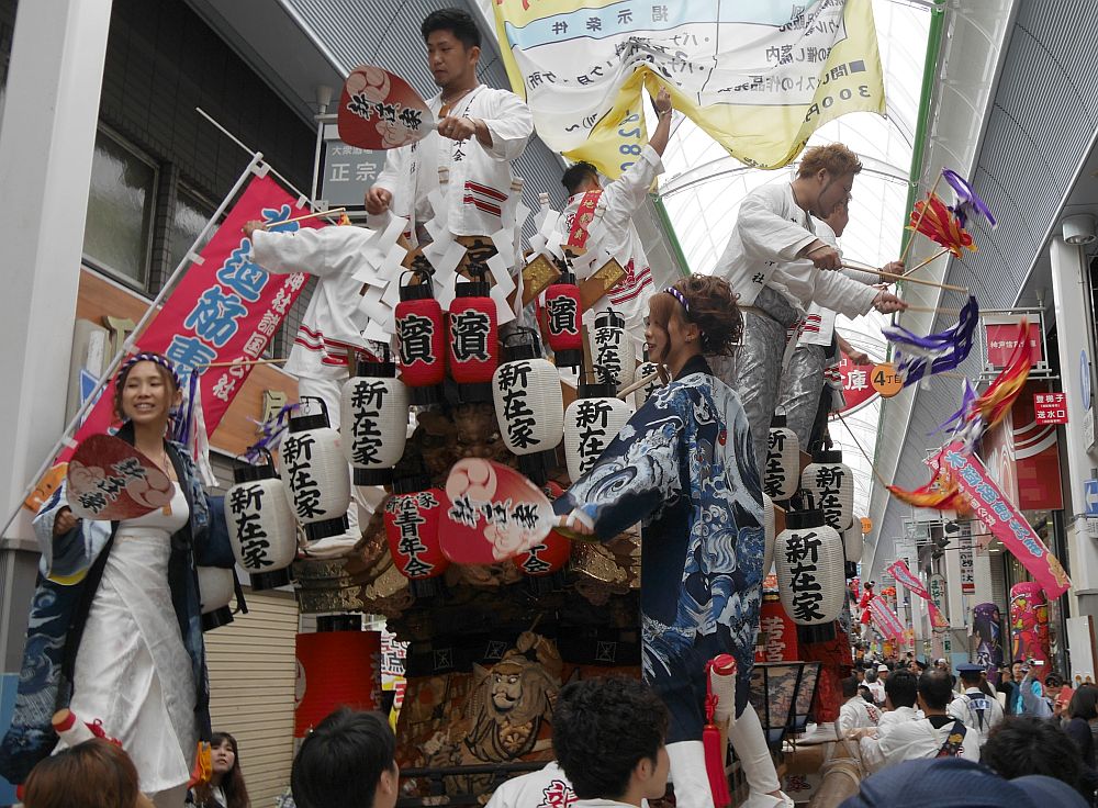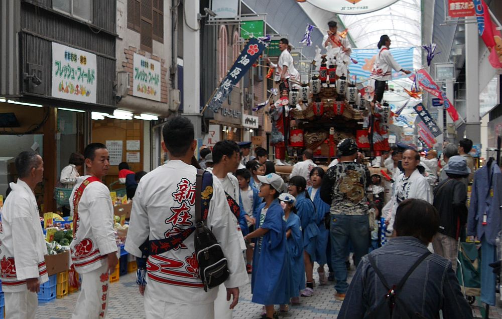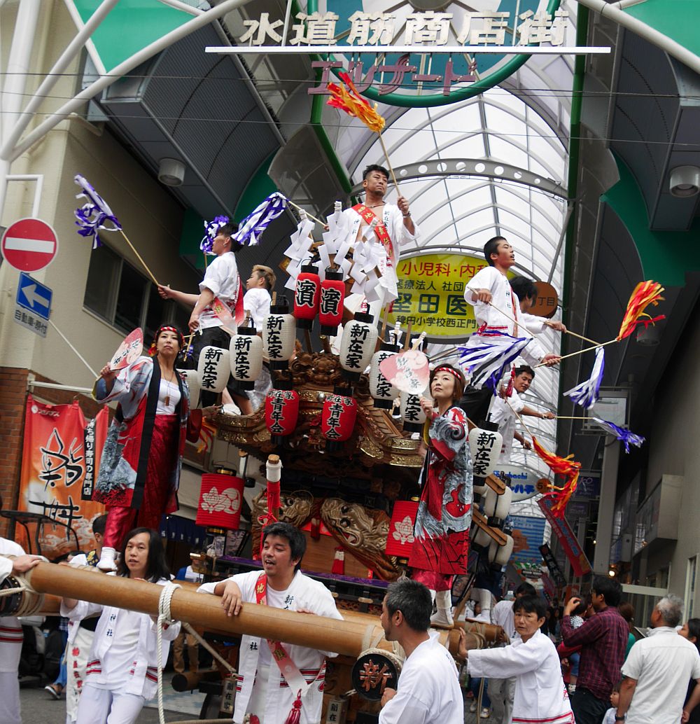 水道筋商店街を進む新在家地車