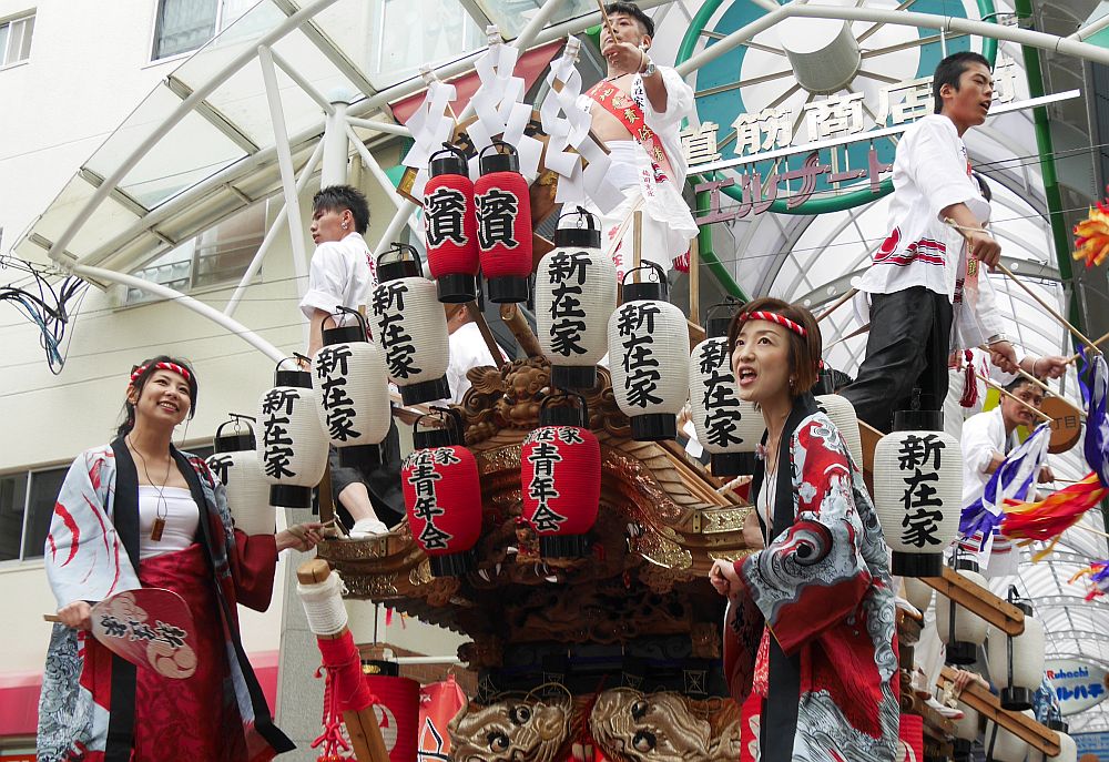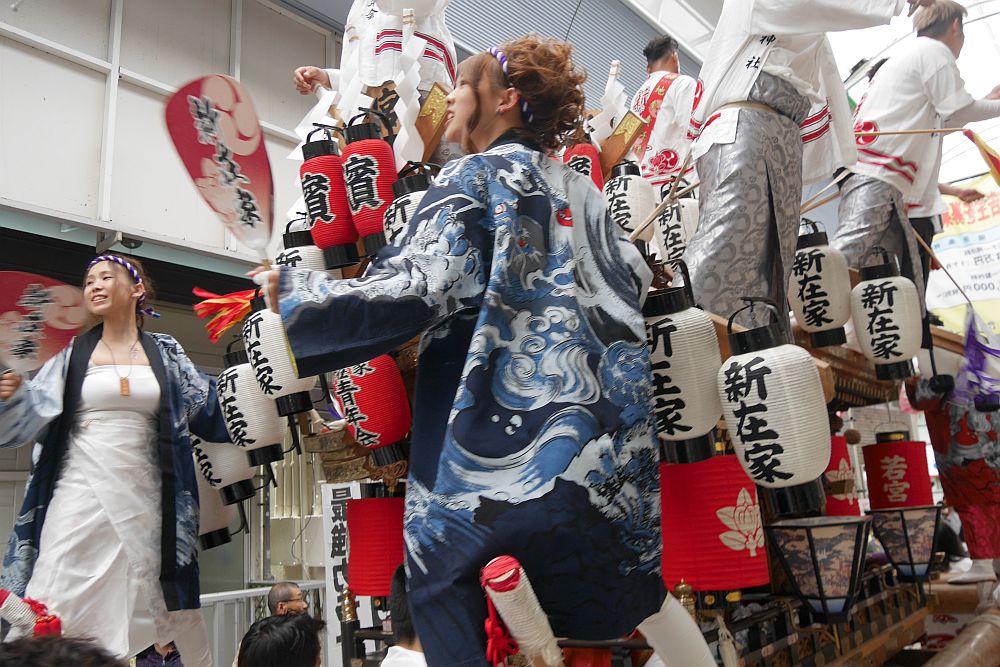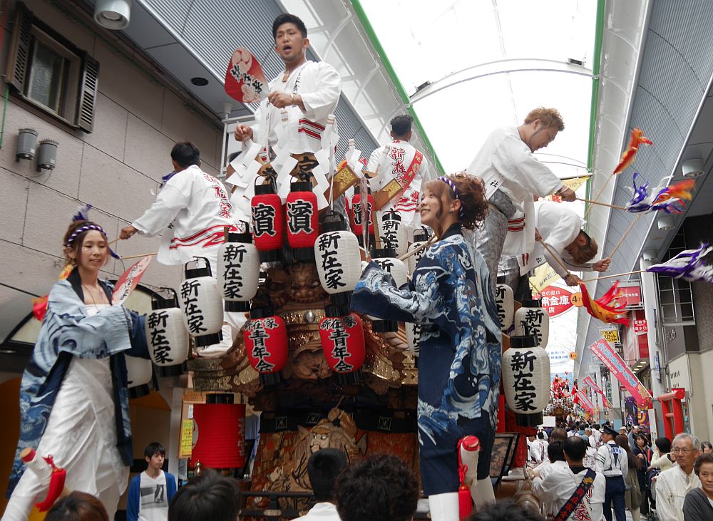 地車の4隅には女性4人の姿。