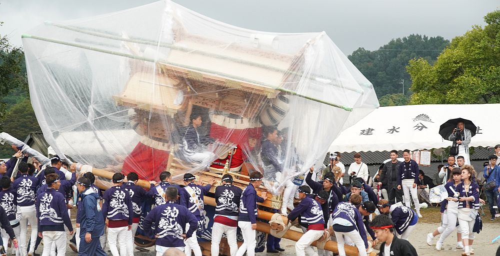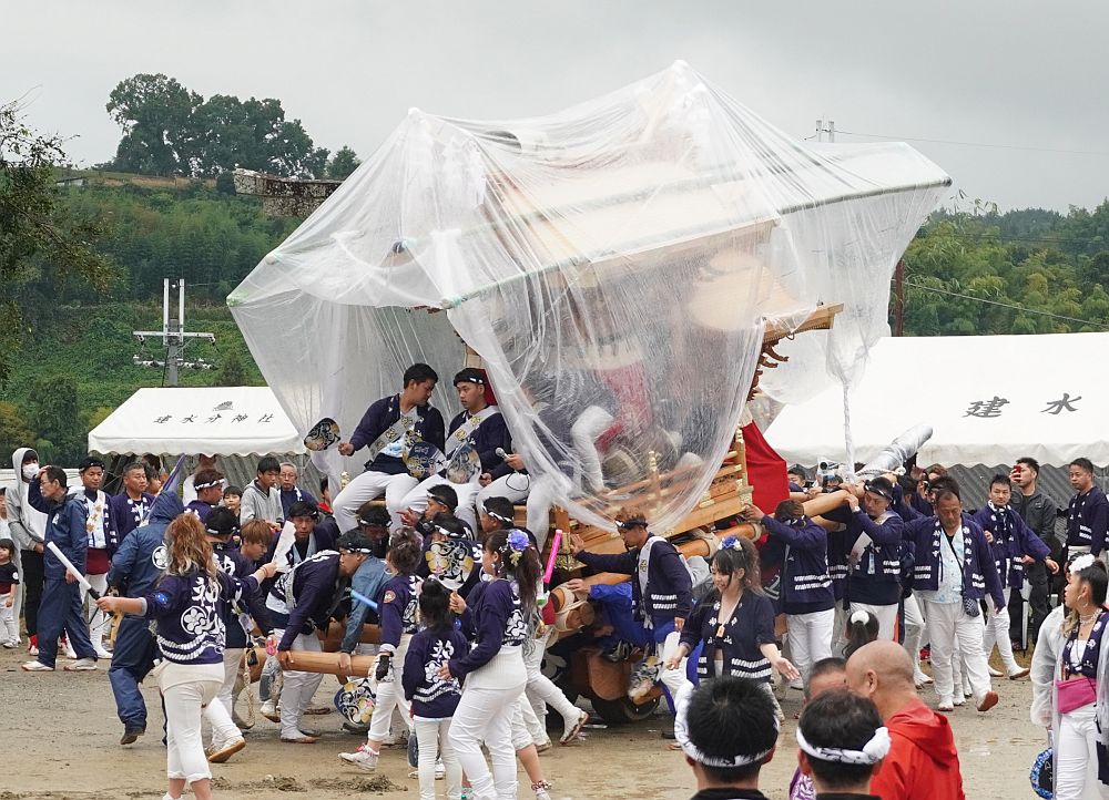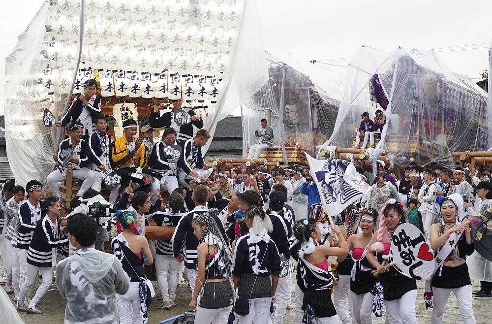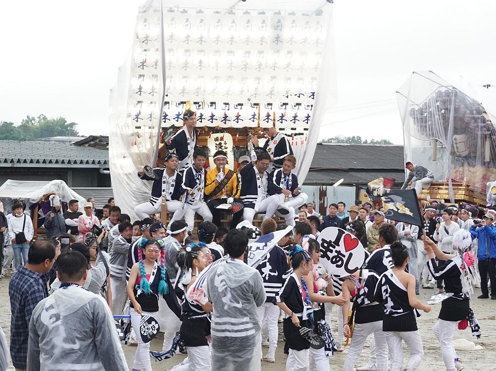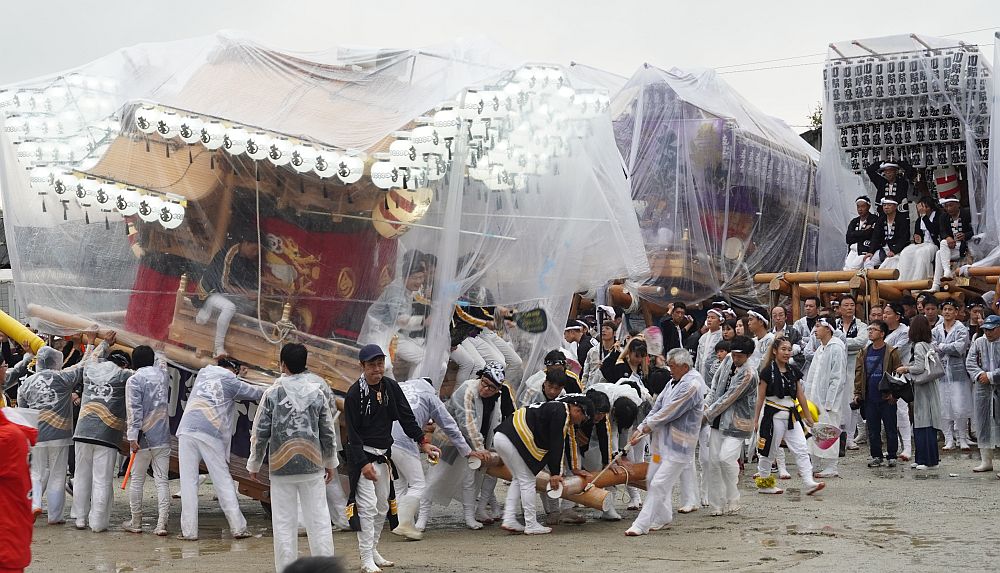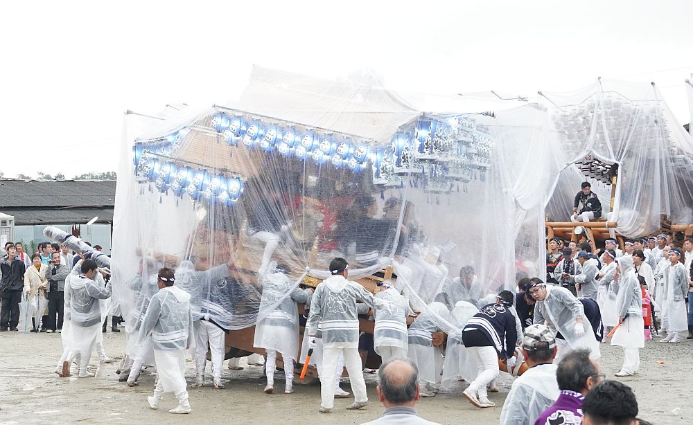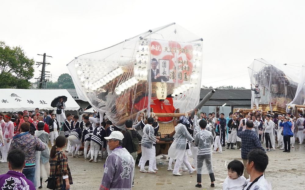 なお、この日の宮出は雨のため全ての地車が雨除けシート着用でした。