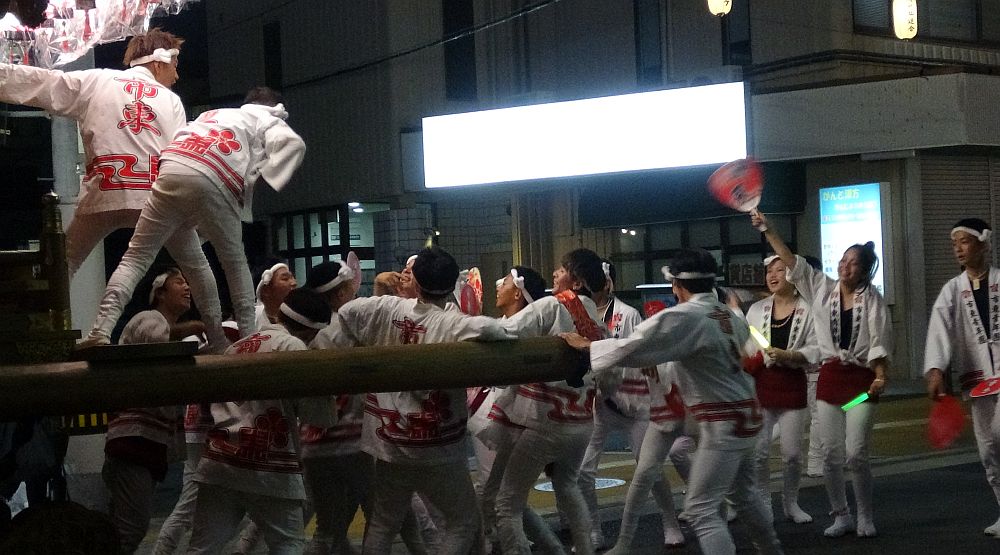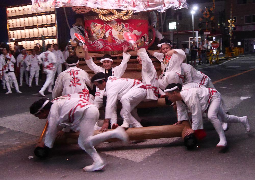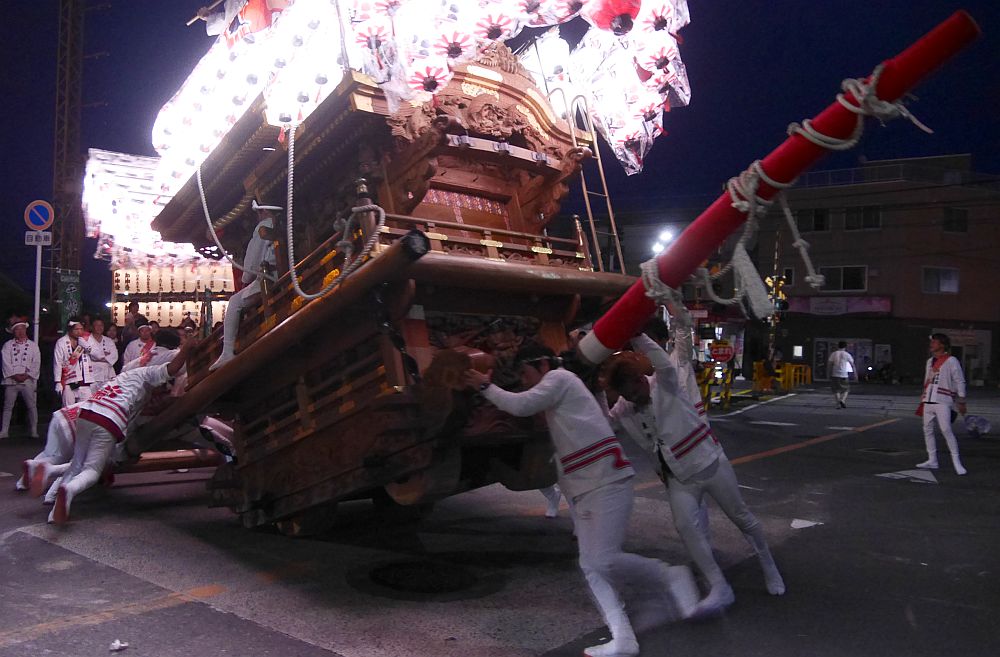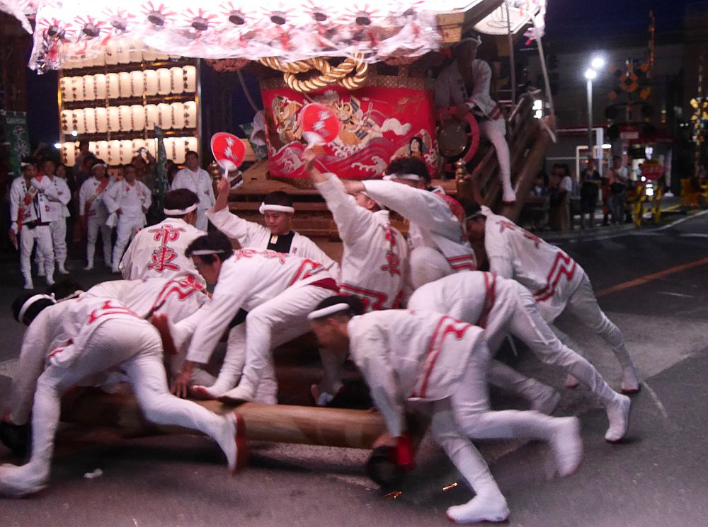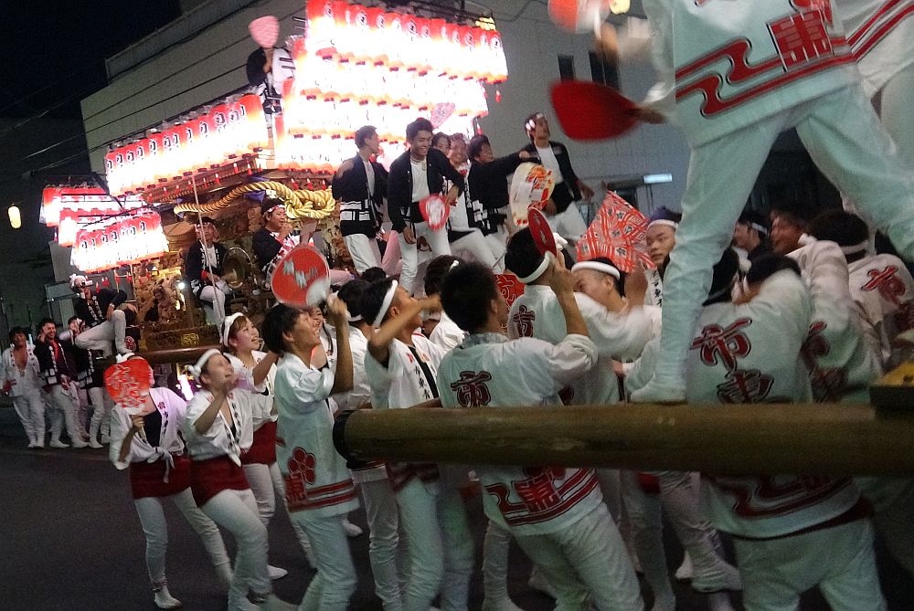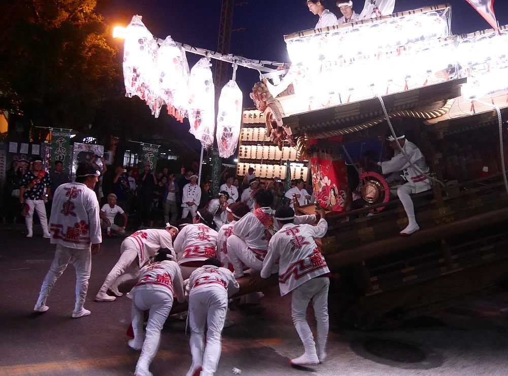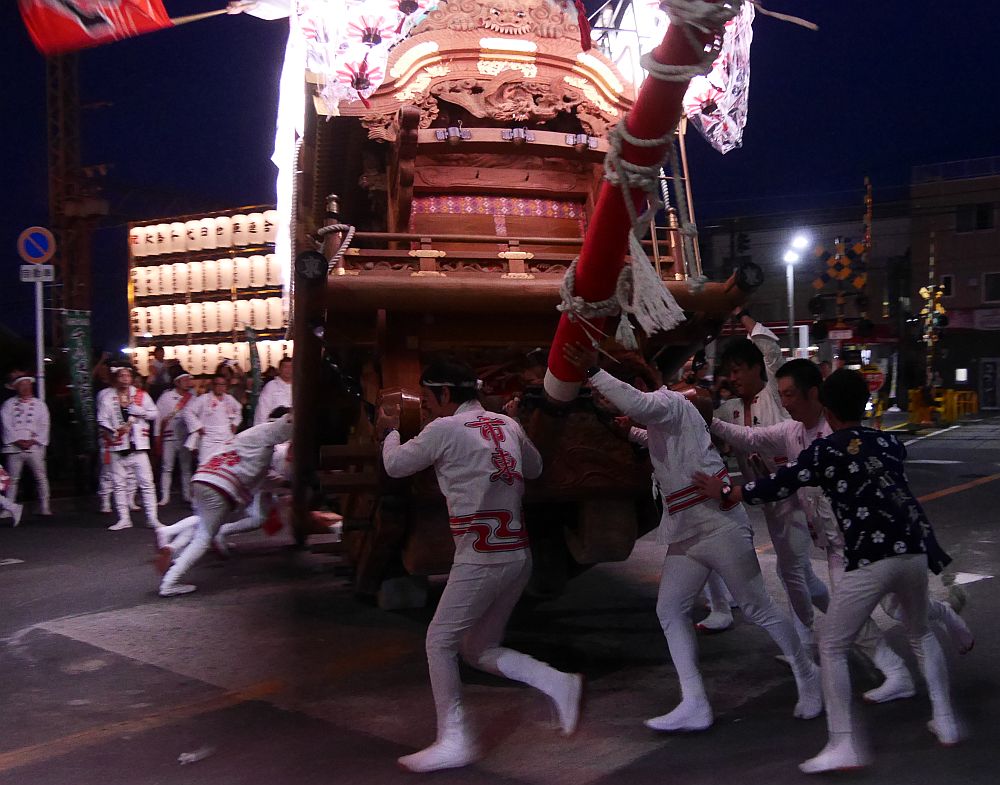 しばらく2台の地車が止まり、一緒に盛り上がってました。