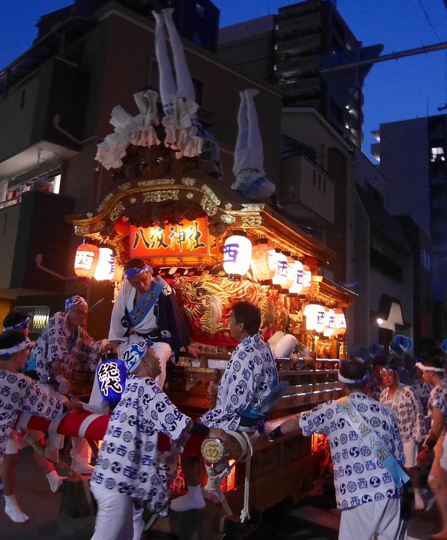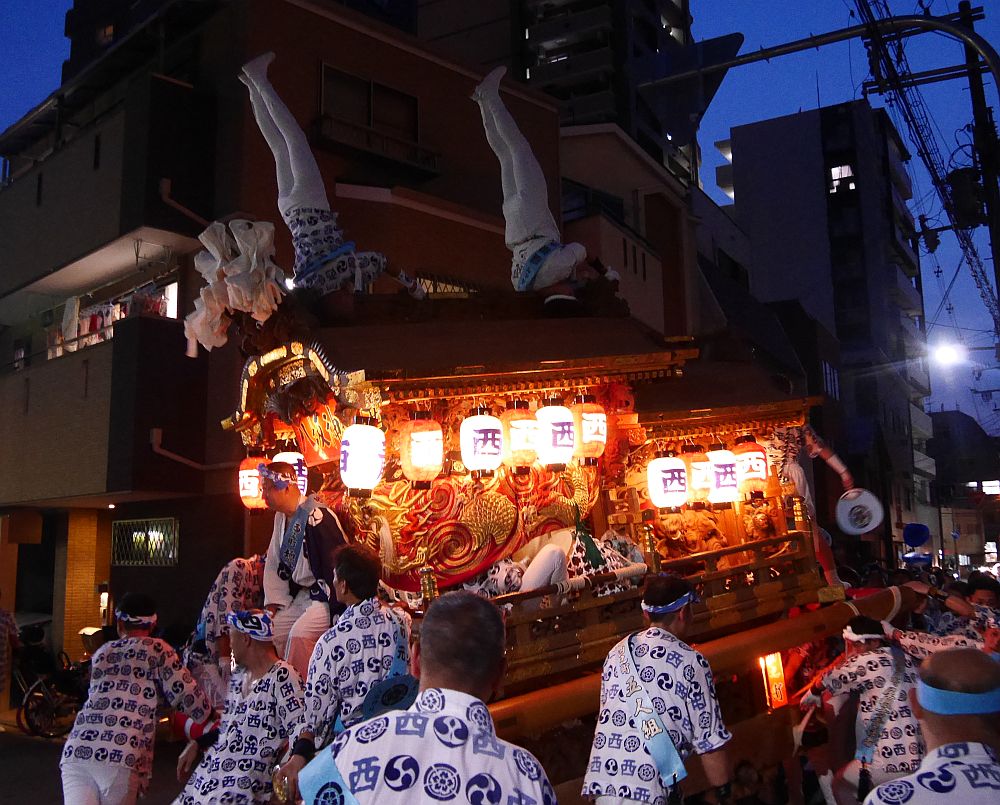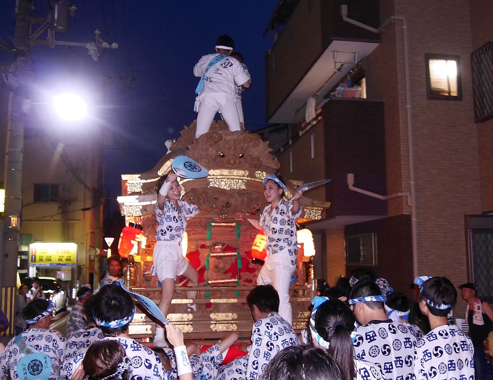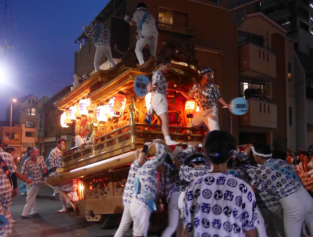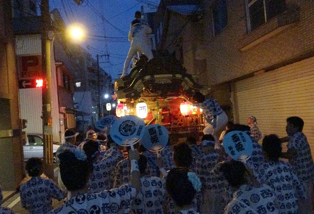 では、福島区の海老江夏祭り宵宮曳行画像その4:西之町をご覧下さい。