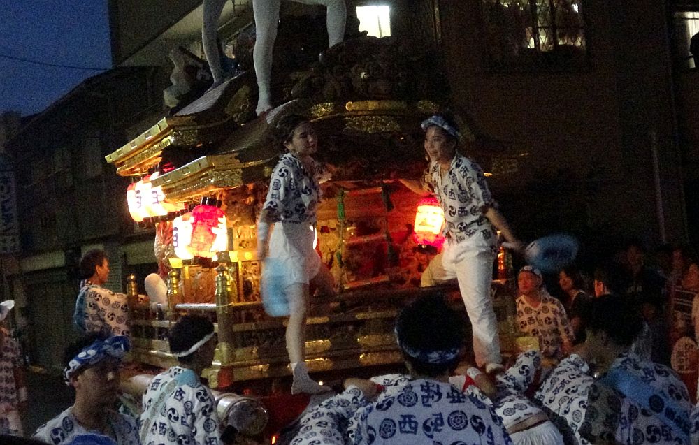 お囃子が速くなり屋根方さんが逆立ちを始めました。