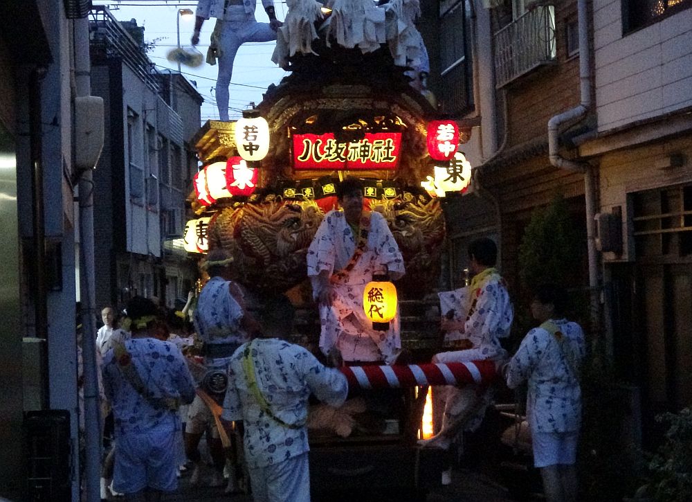 さらに狭い道へと入って行く海老江東之町地車
