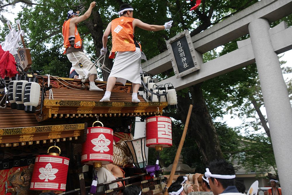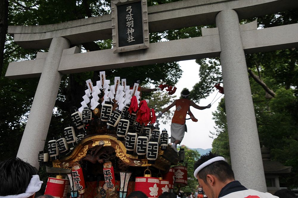 弓弦羽神社に別れを告げた平野地車