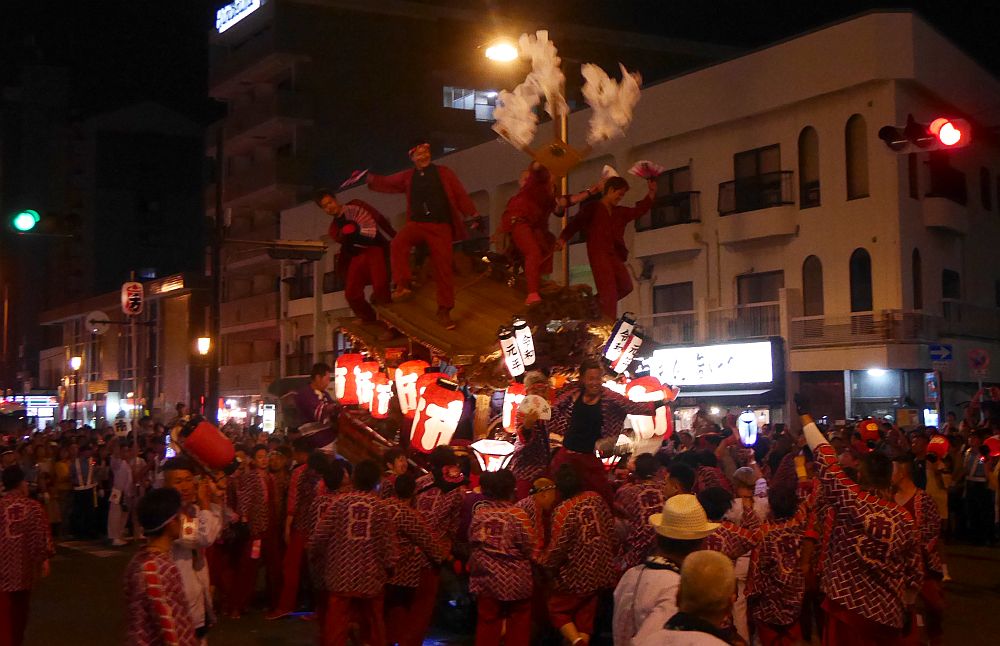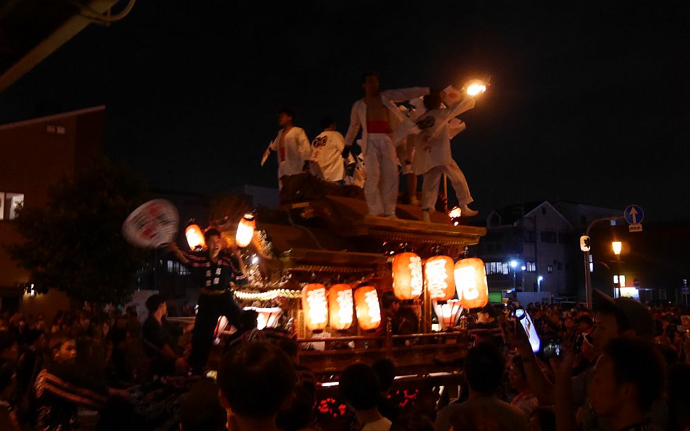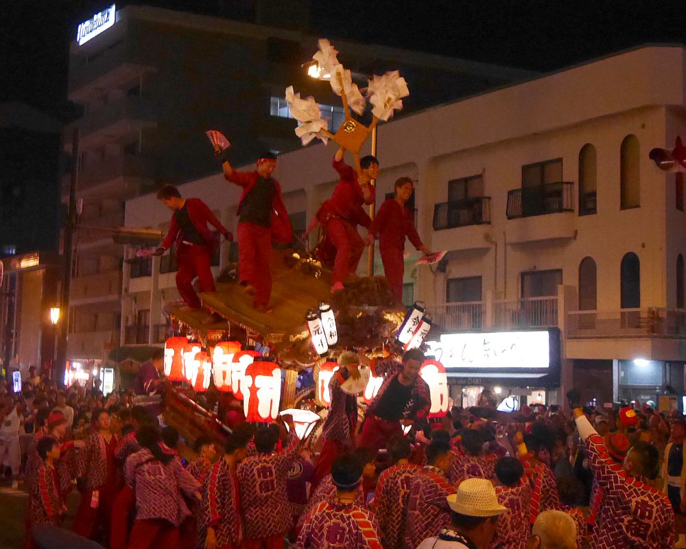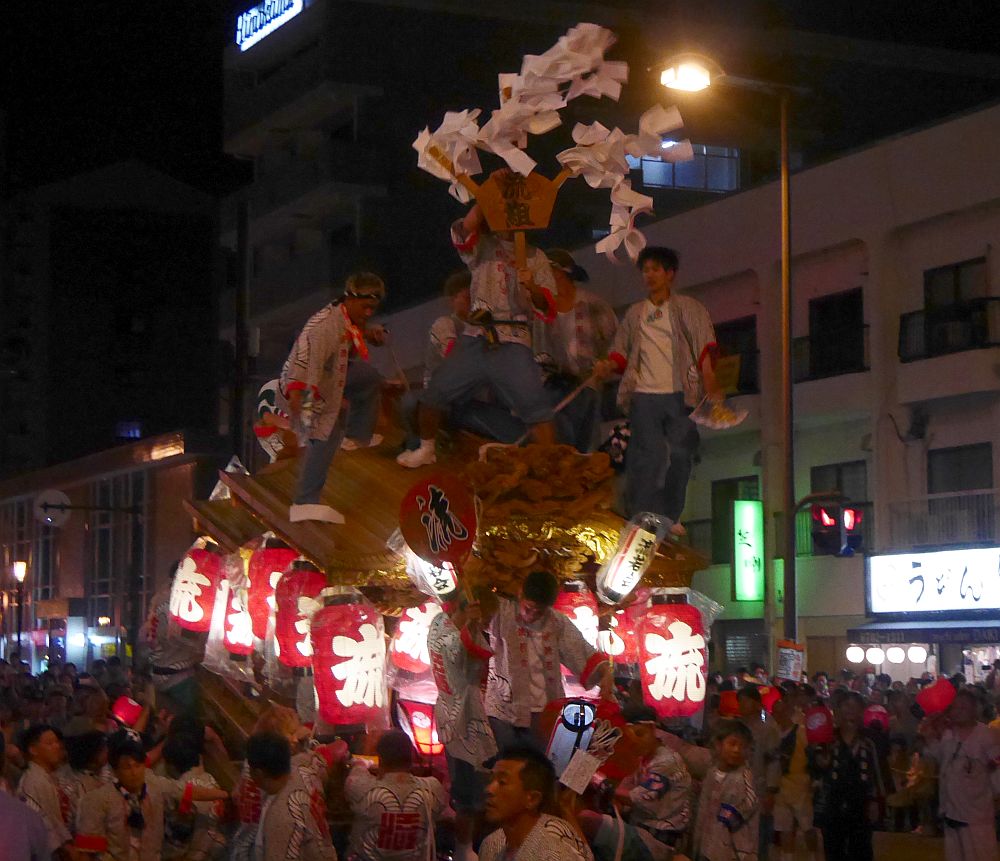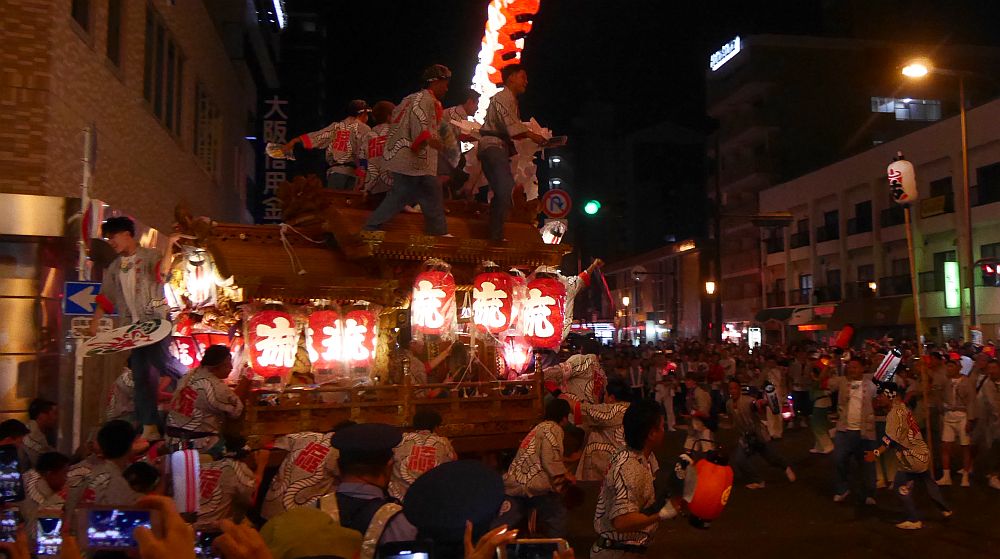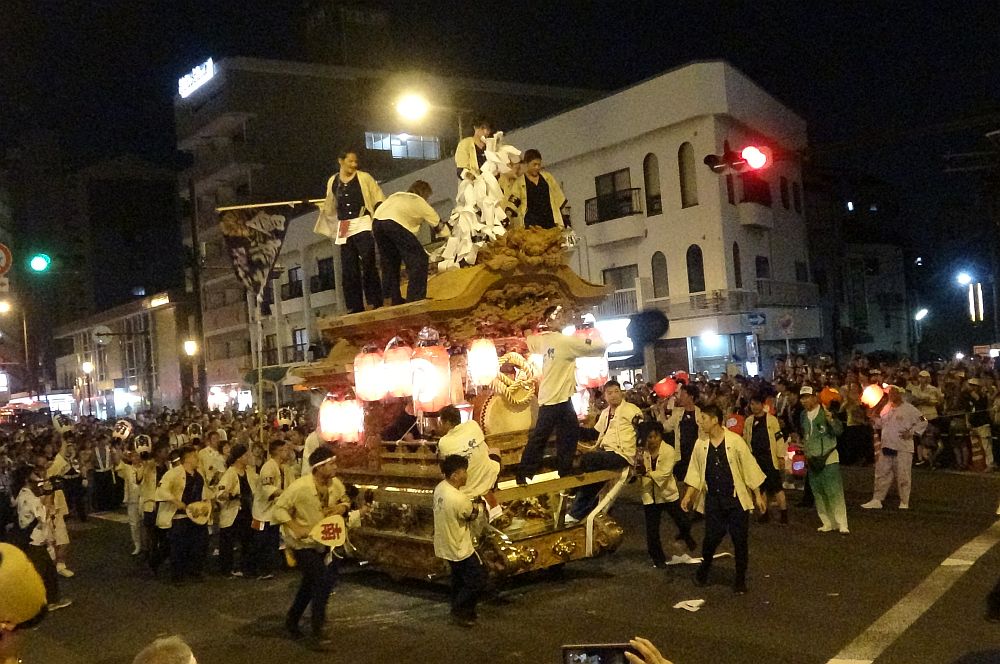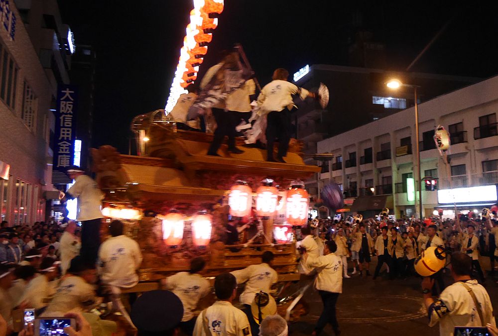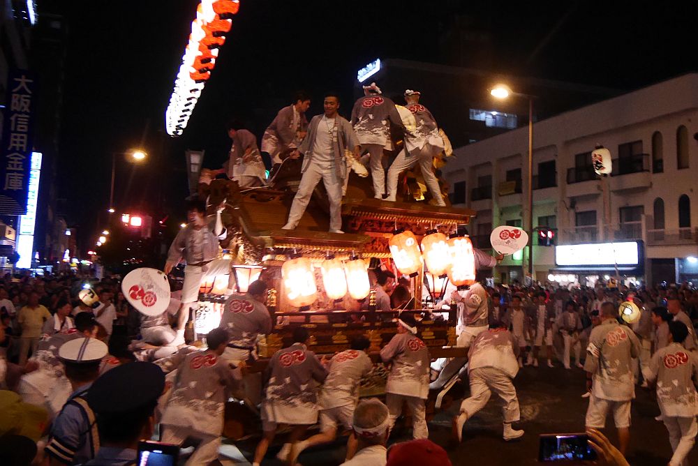 平野区の南港通りで行われる9町合同曳行は午後9時半開始。