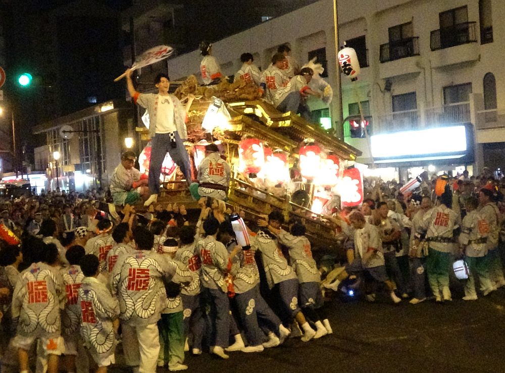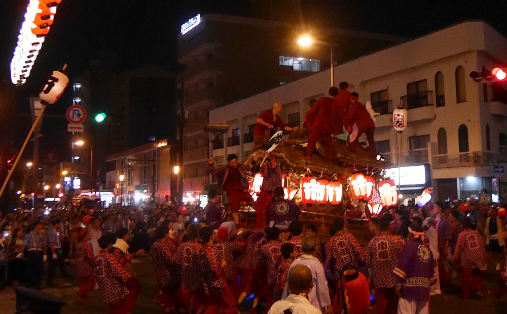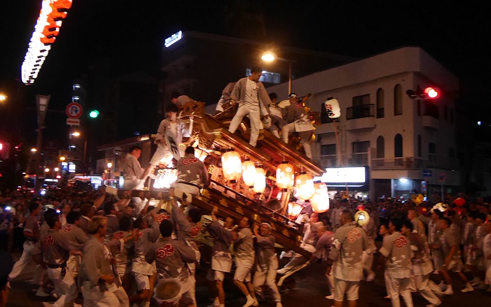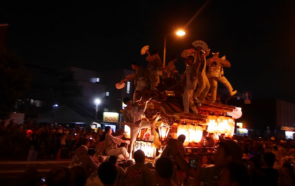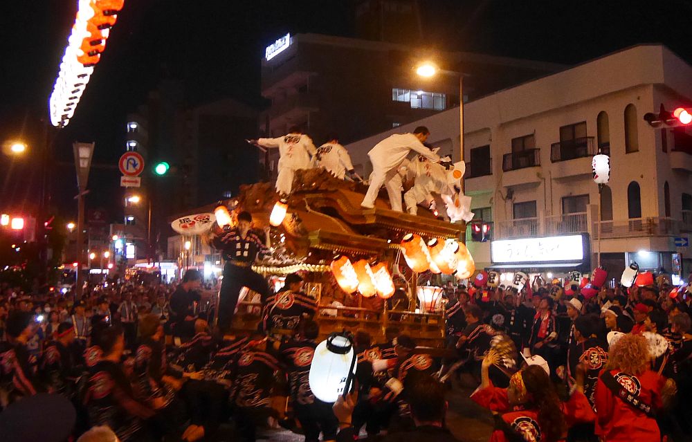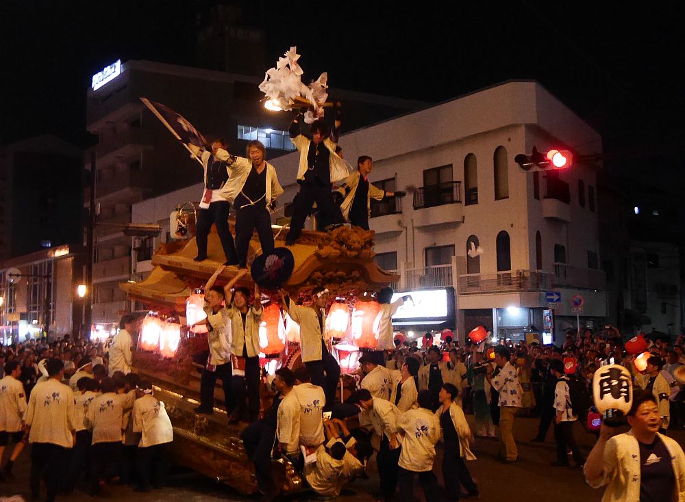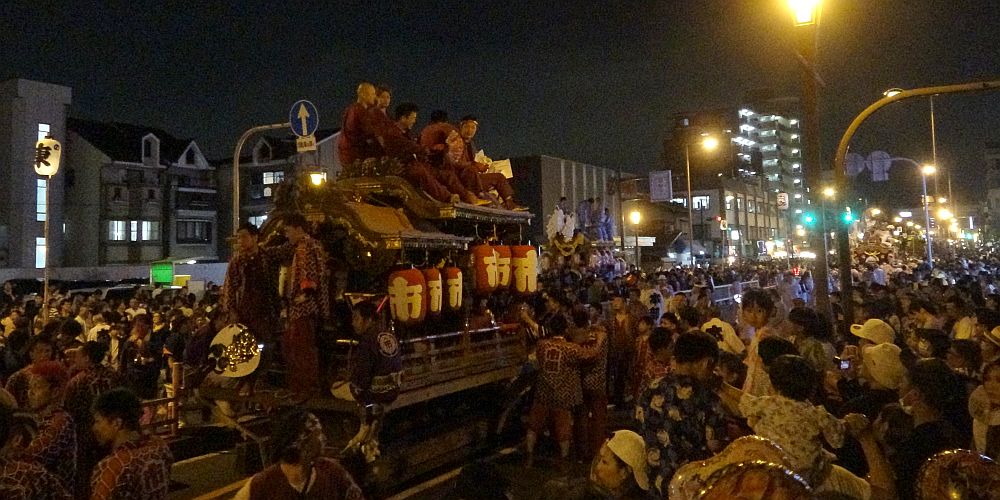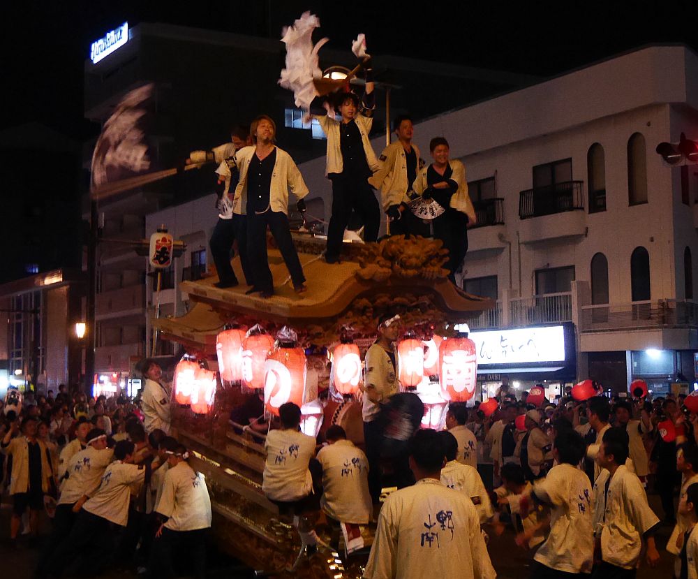 平野区の南港通りで行われる9町合同曳行は午後9時半開始。