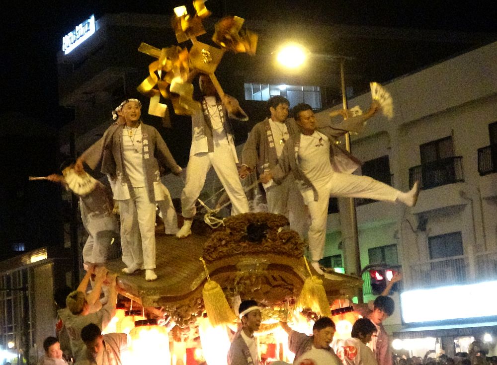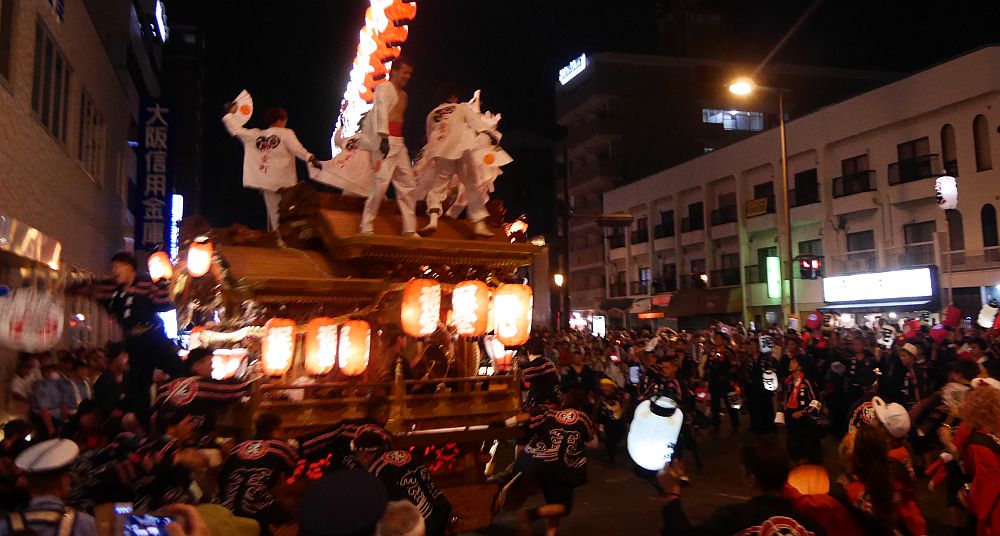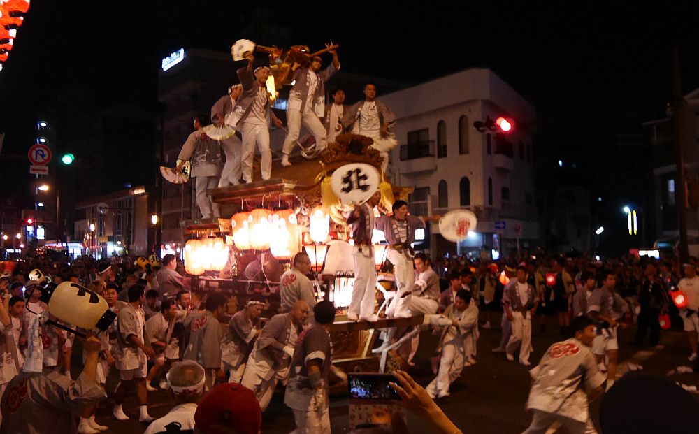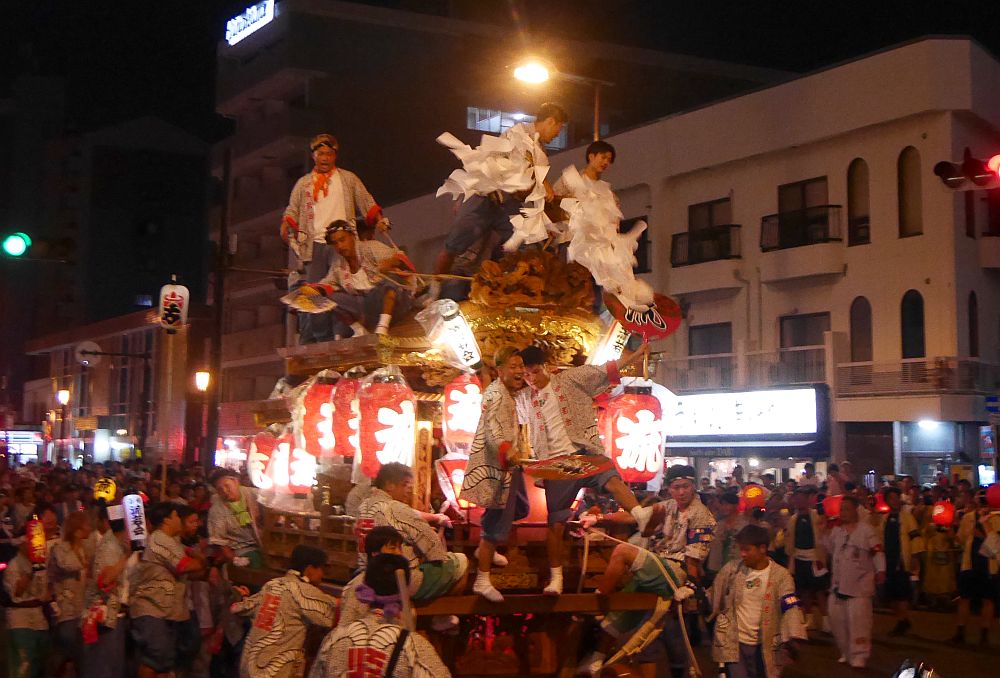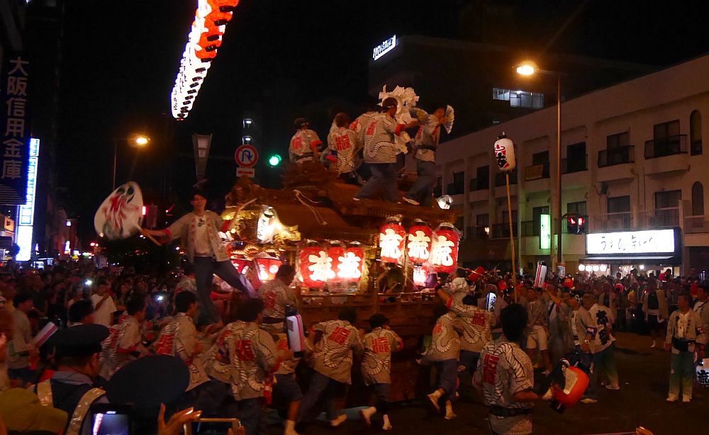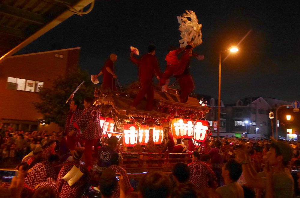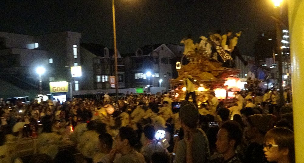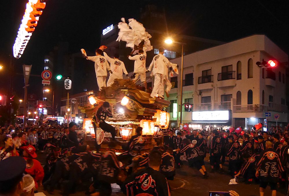 平野区の南港通りで行われる9町合同曳行は午後9時半開始。