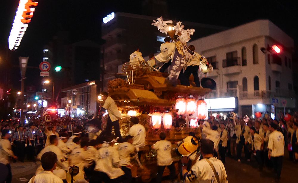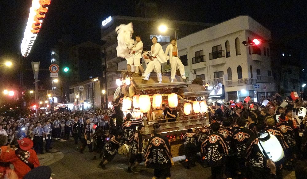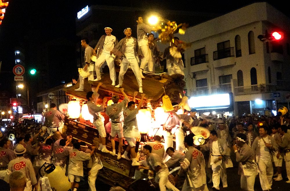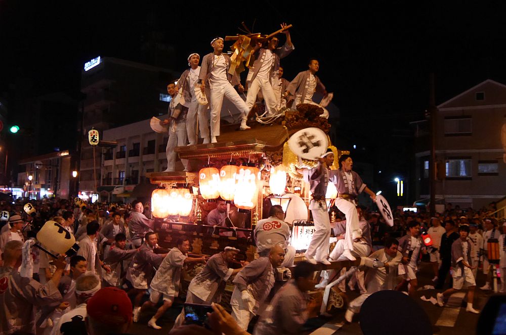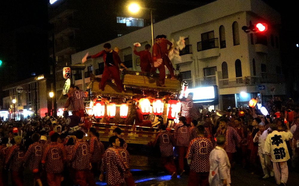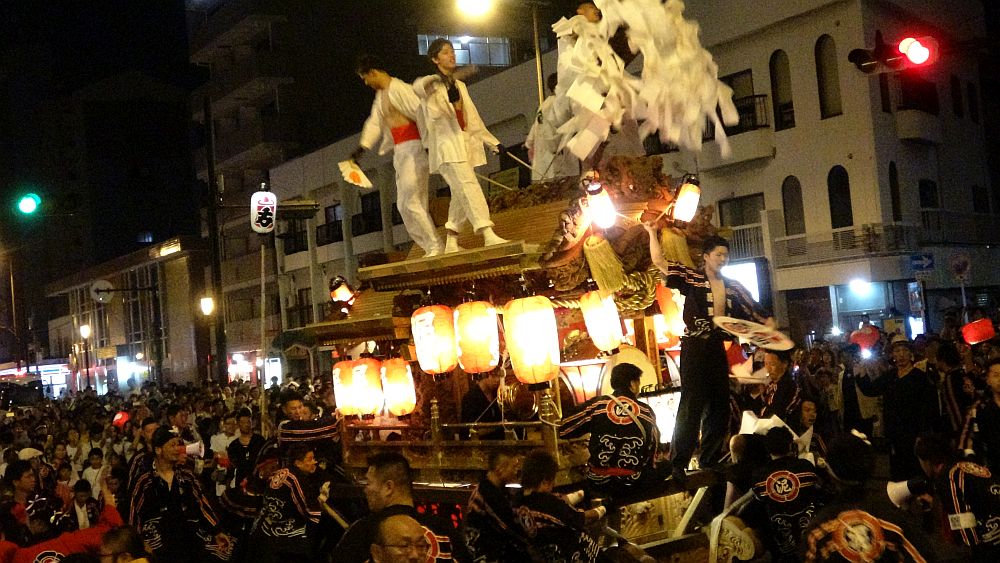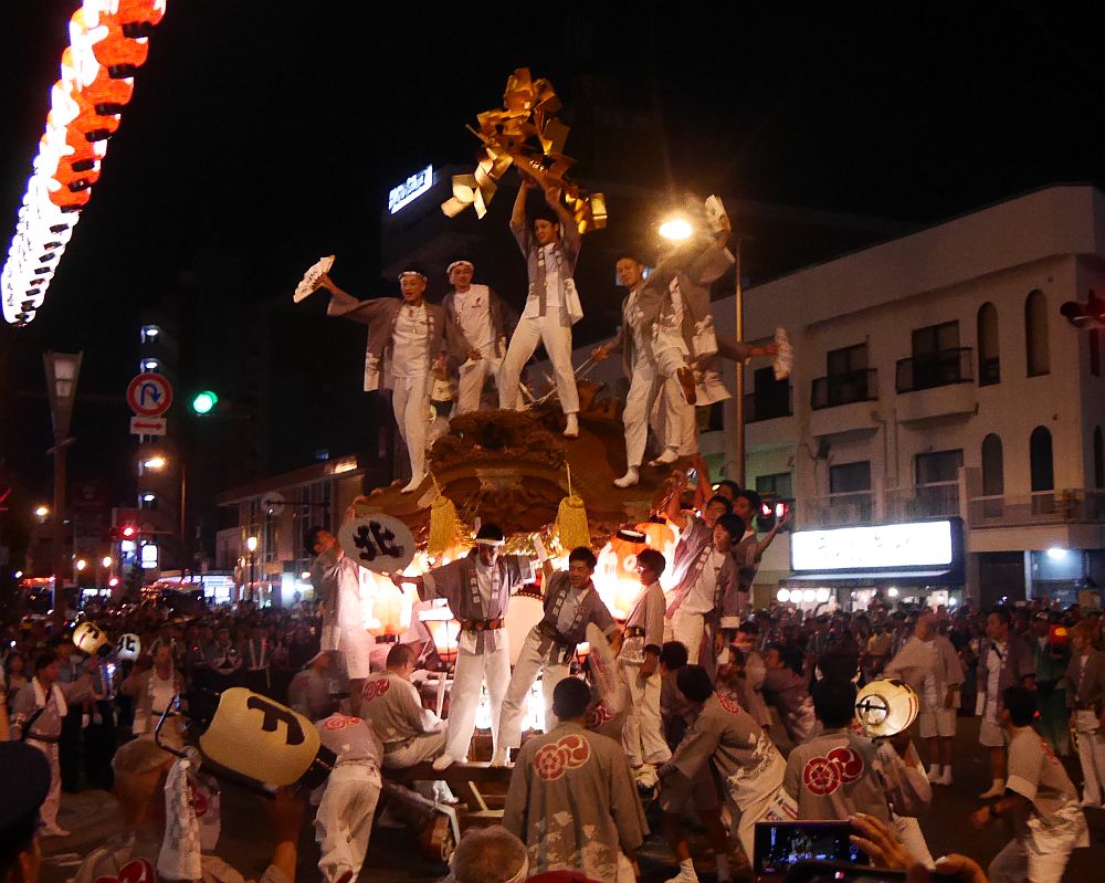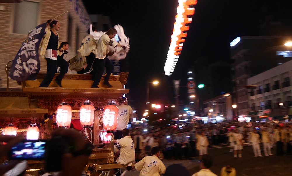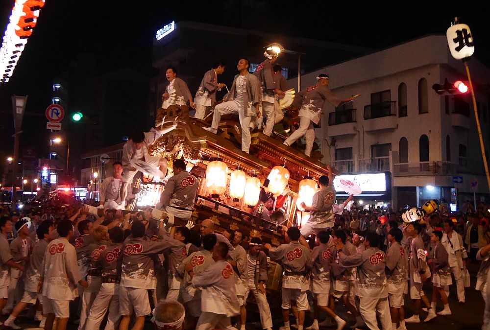 平野区の南港通りで行われる9町合同曳行は午後9時半開始。