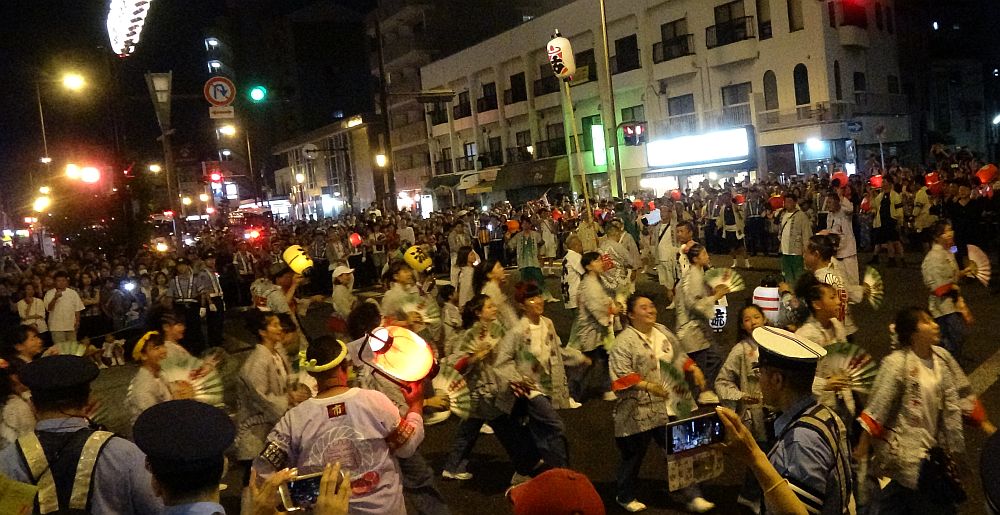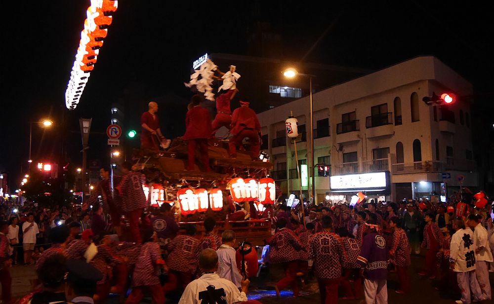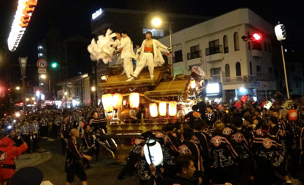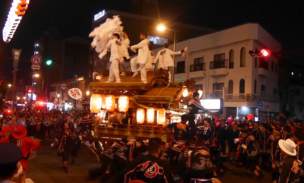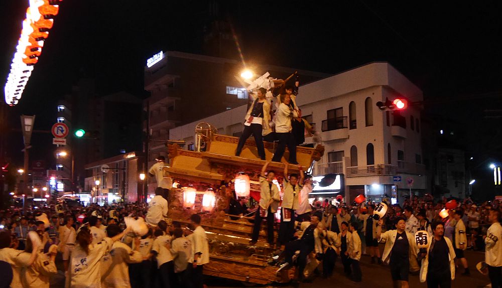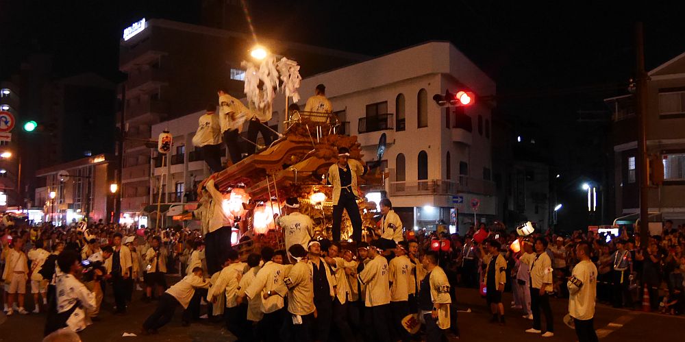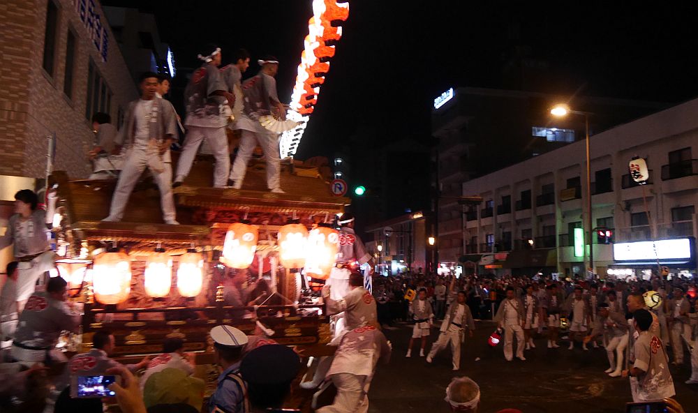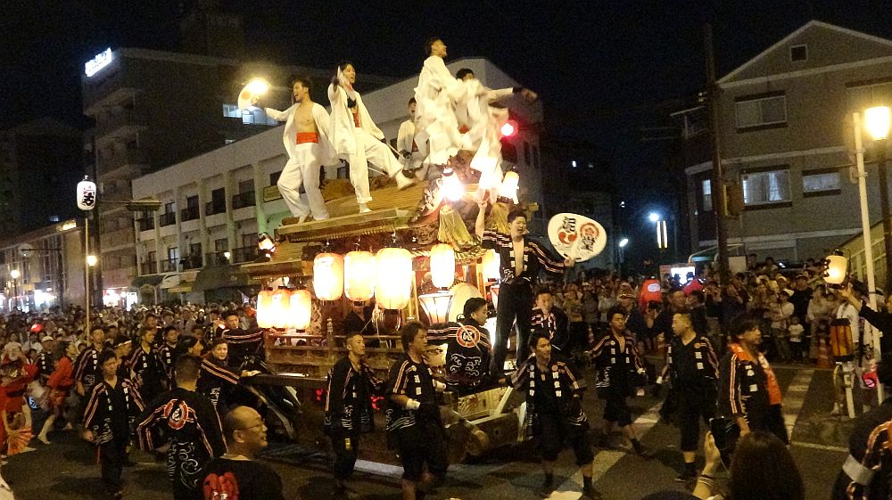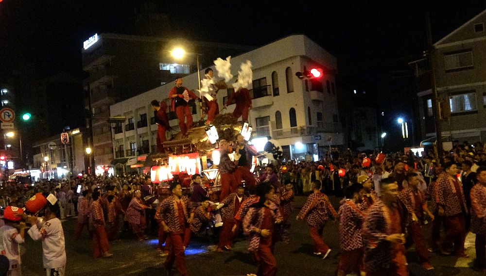 平野区の南港通りで行われる9町合同曳行は午後9時半開始。