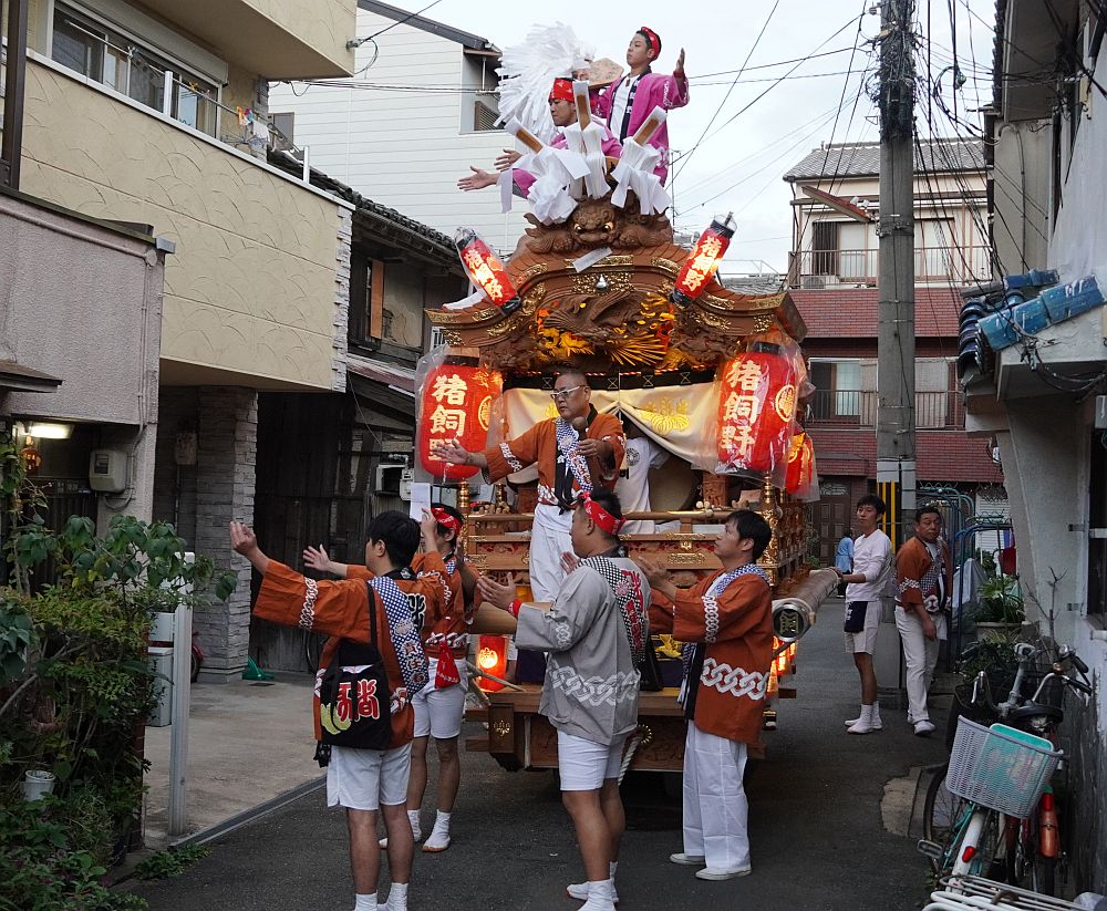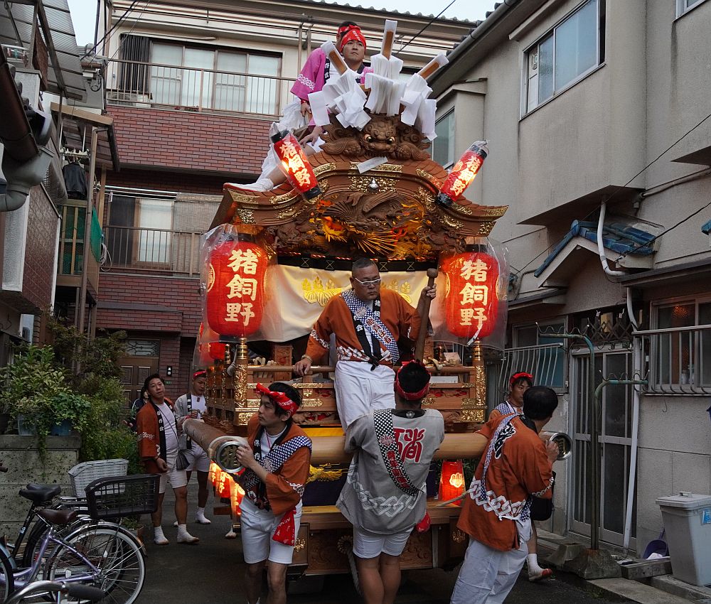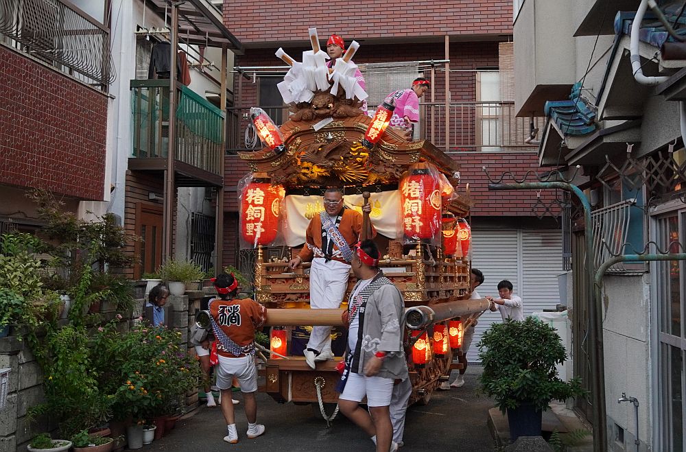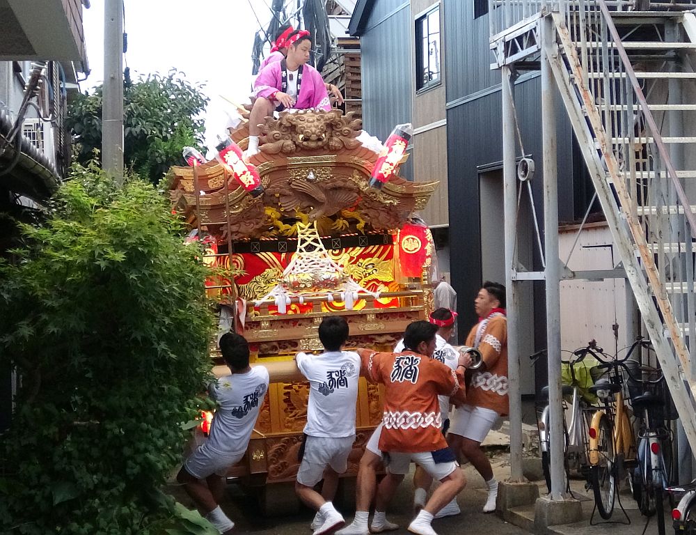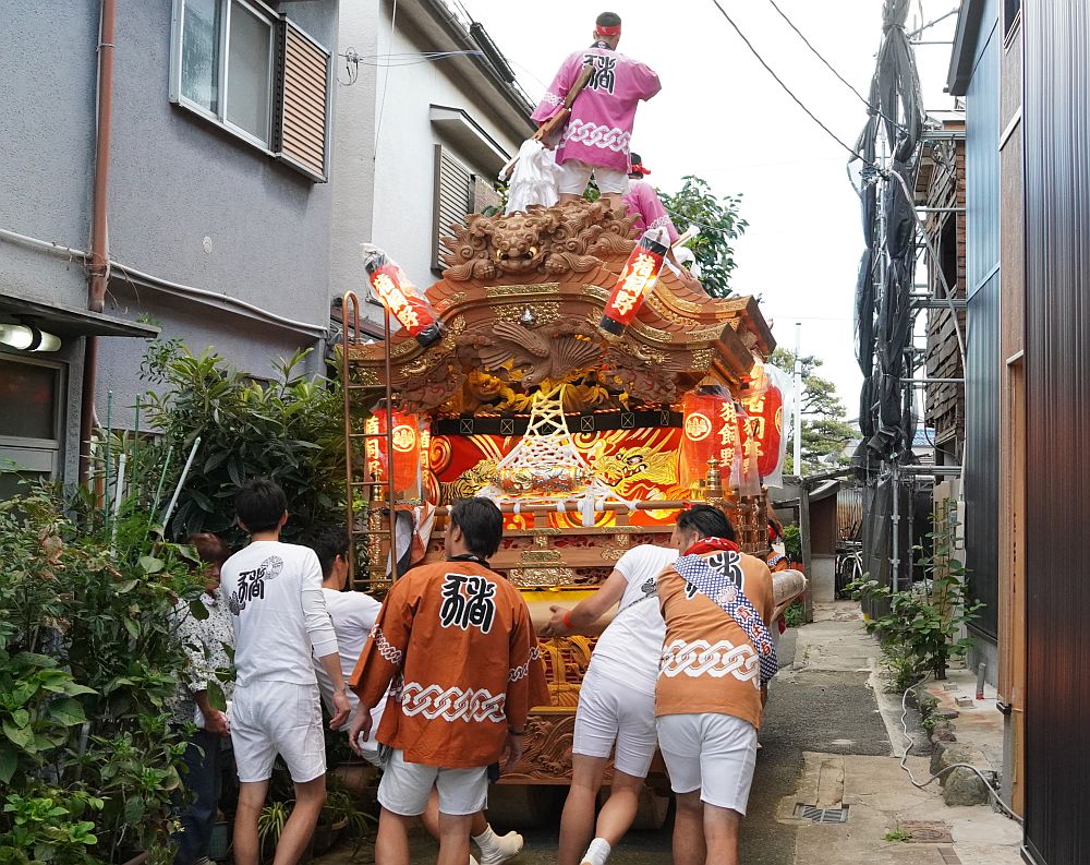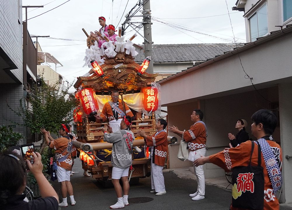 この狭い曲がり角で地車の前後ろを入れ替えるなんて!