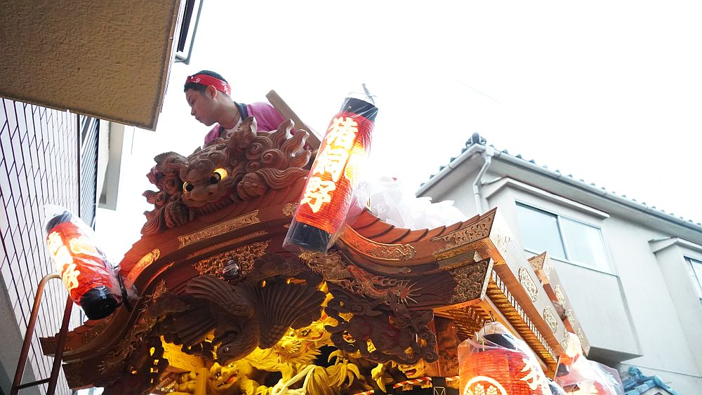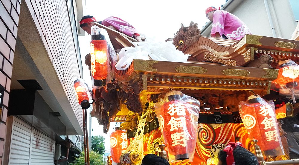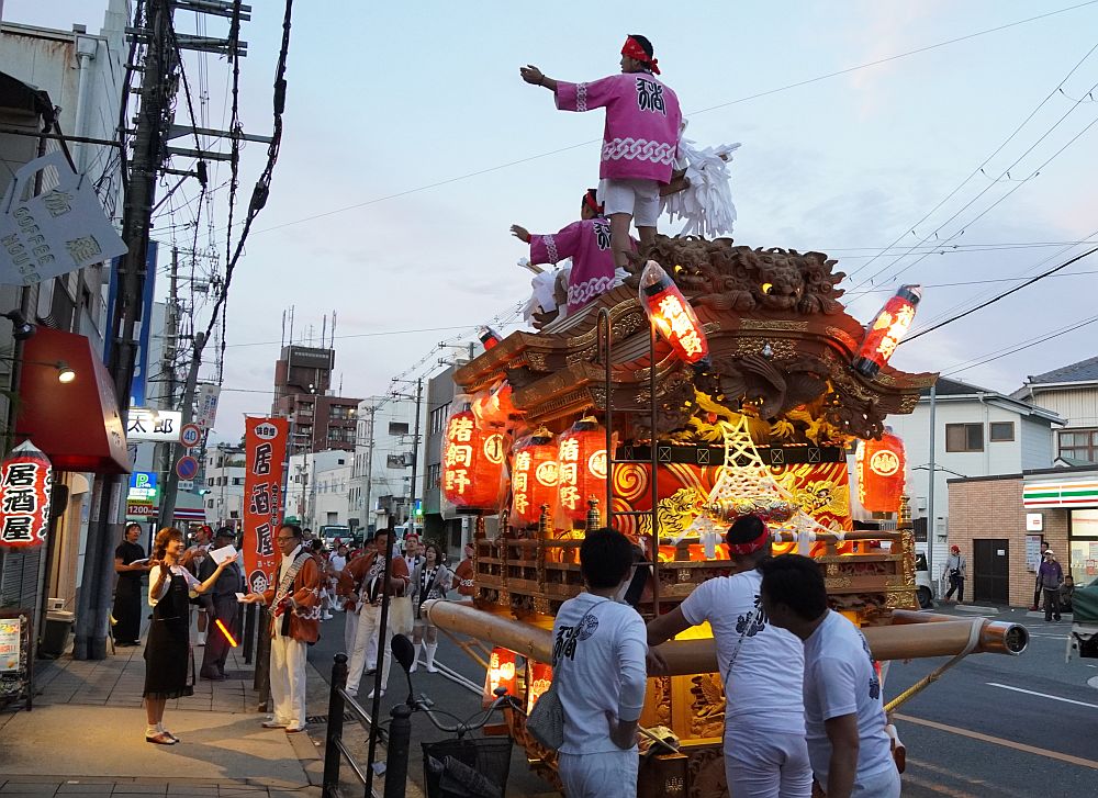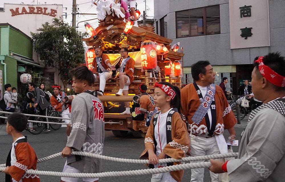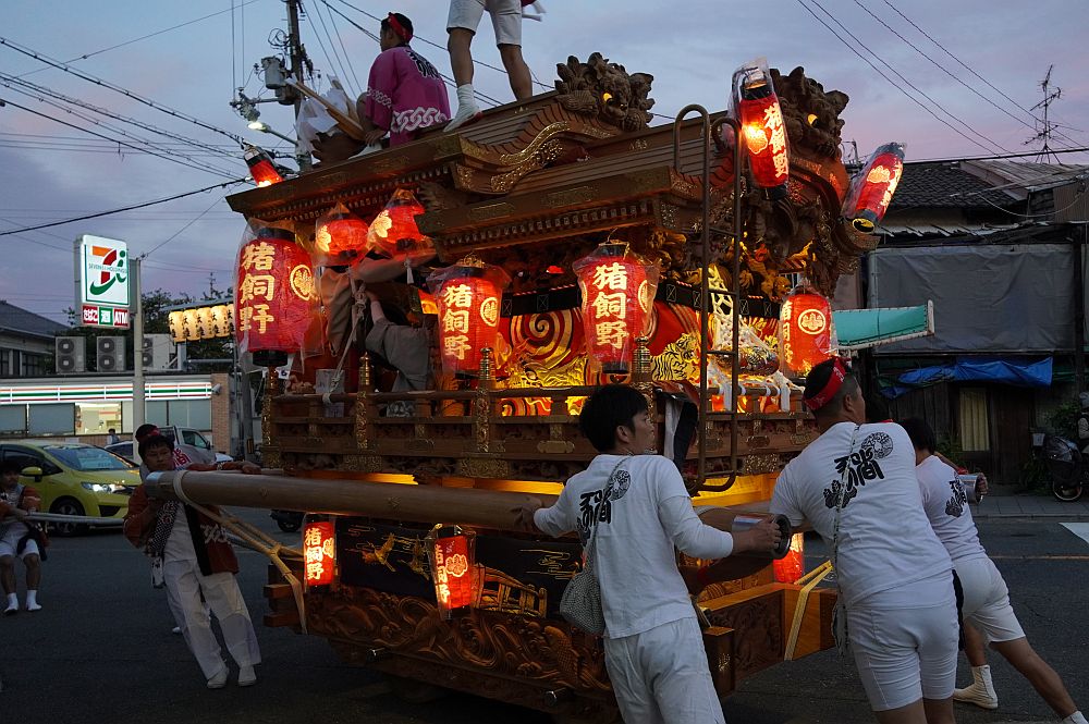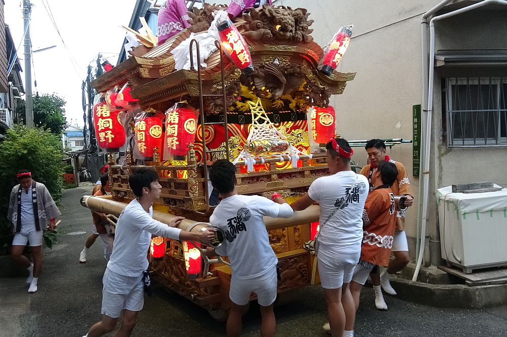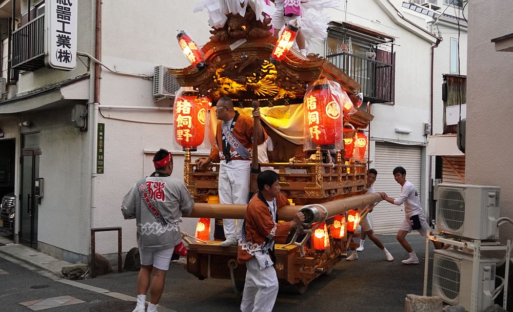 この狭い曲がり角で地車の前後ろを入れ替えるなんて!