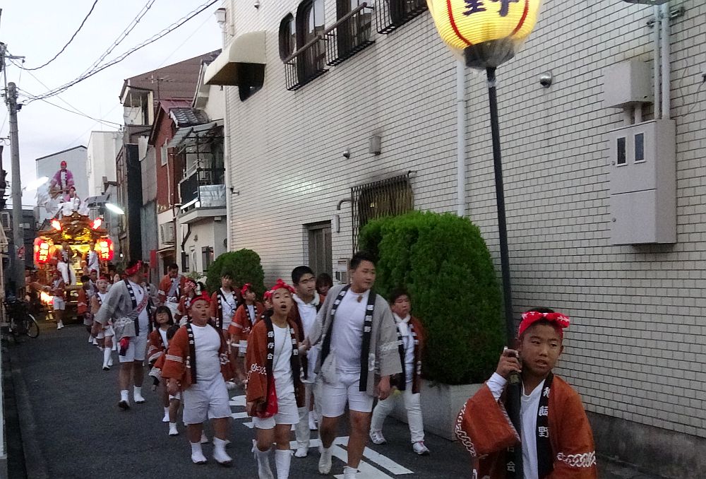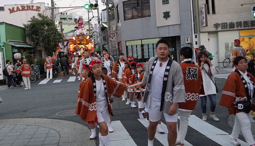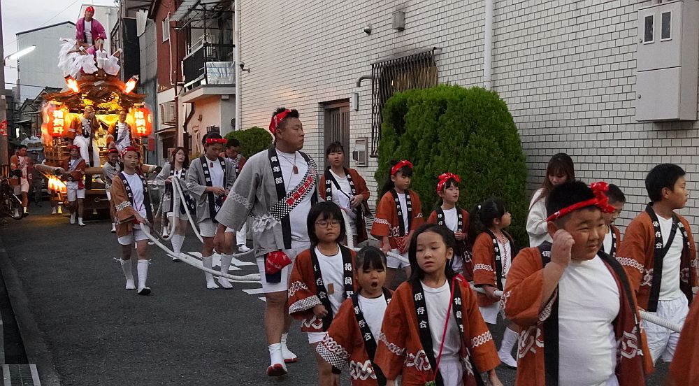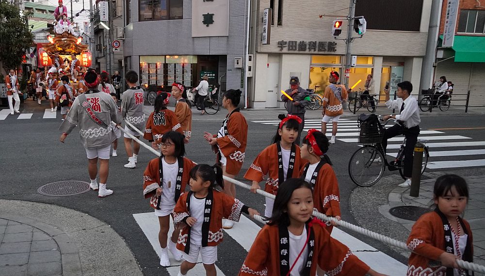 曳き綱は疎開道路を横断して商店街へ行くようです♪