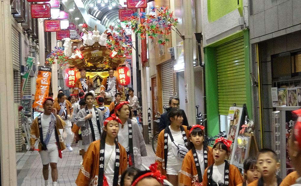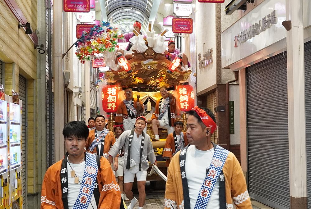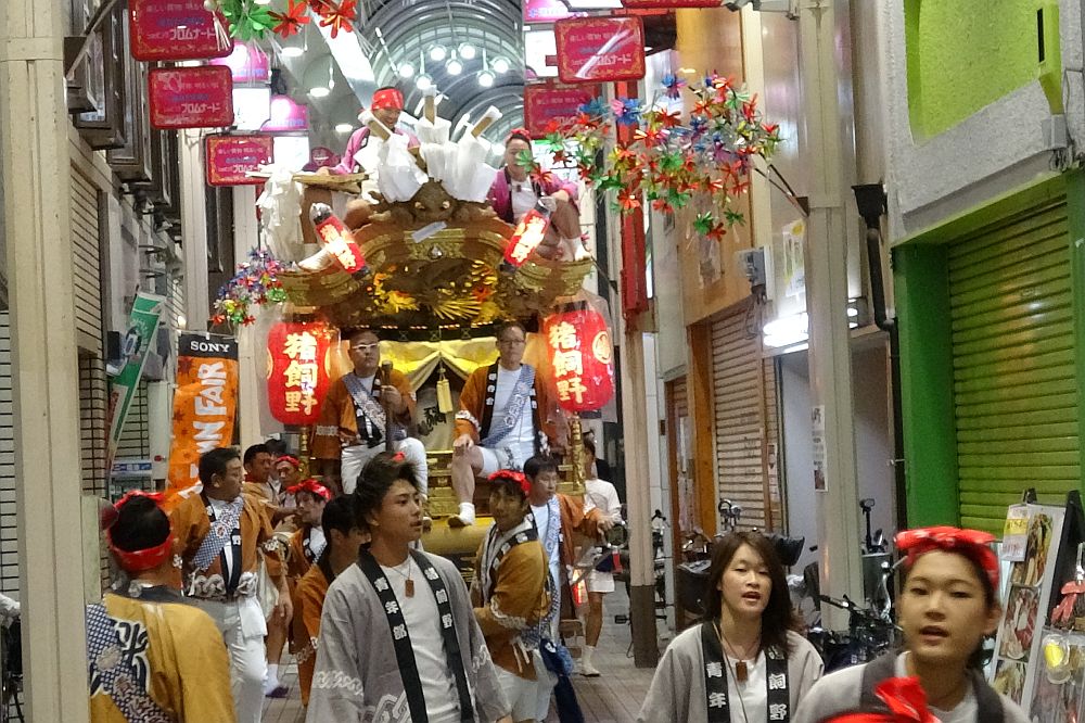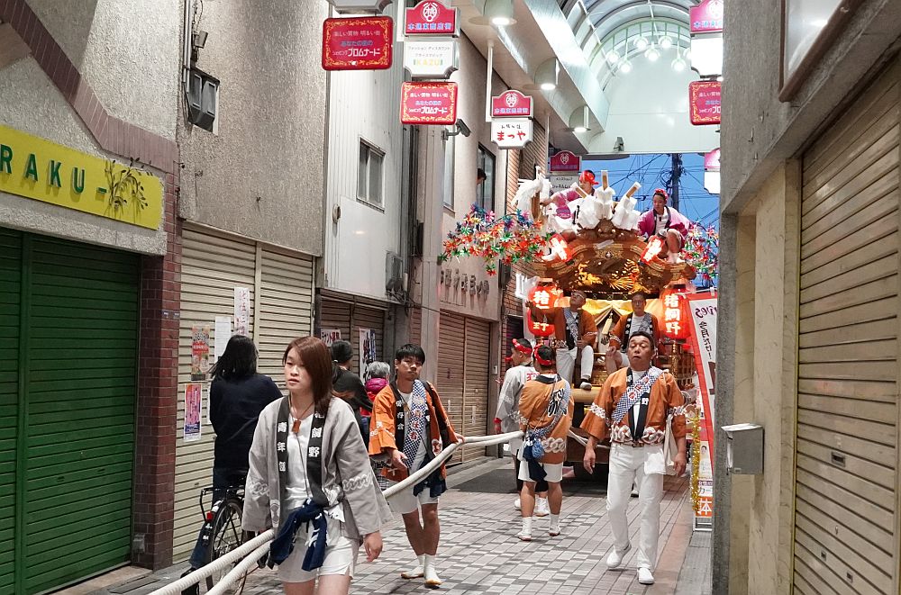 鉦太鼓と掛け声が商店街内に響き渡ります。