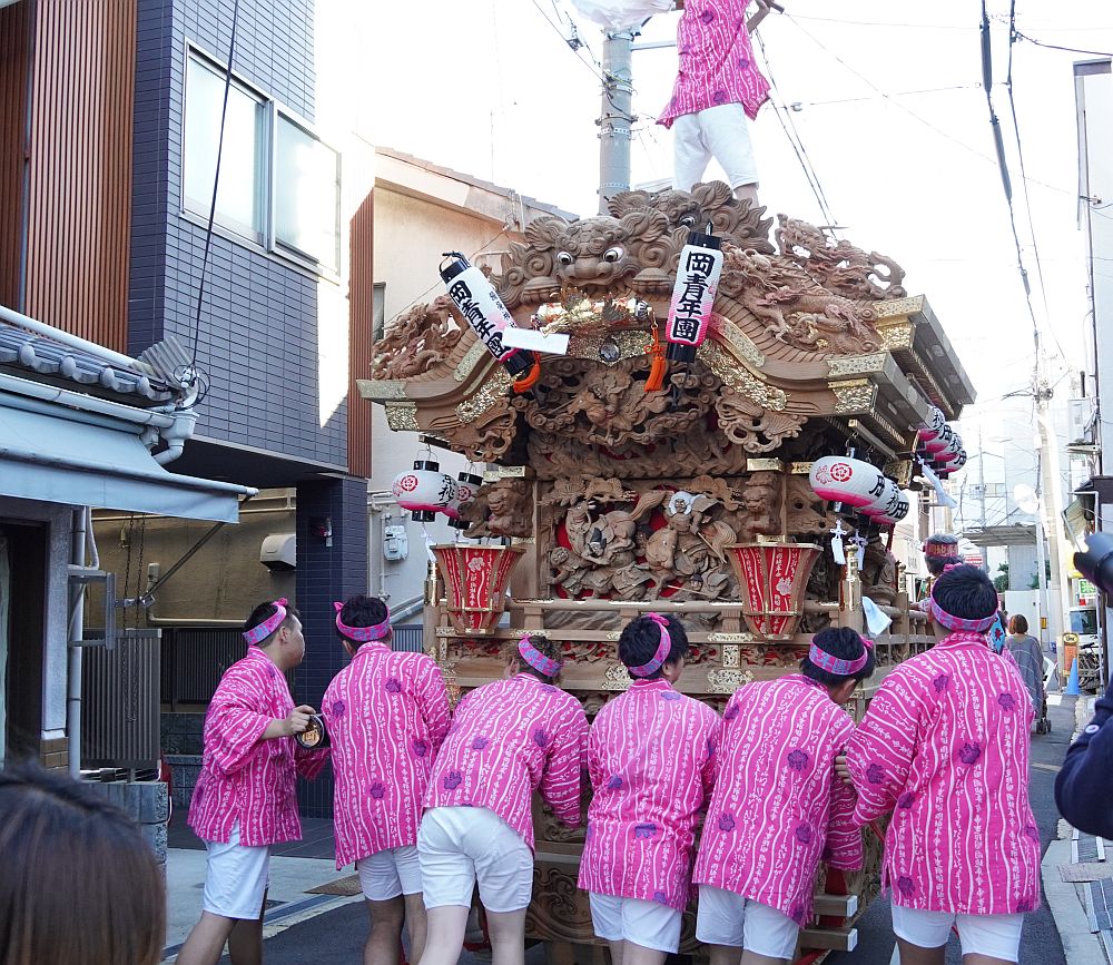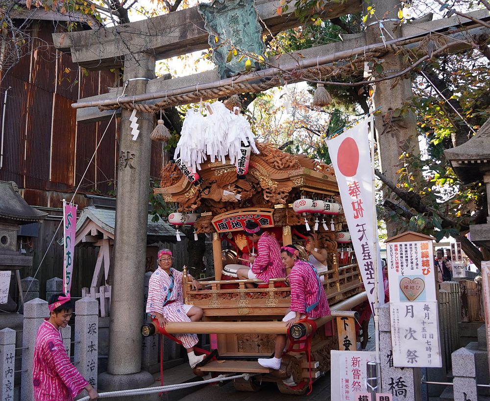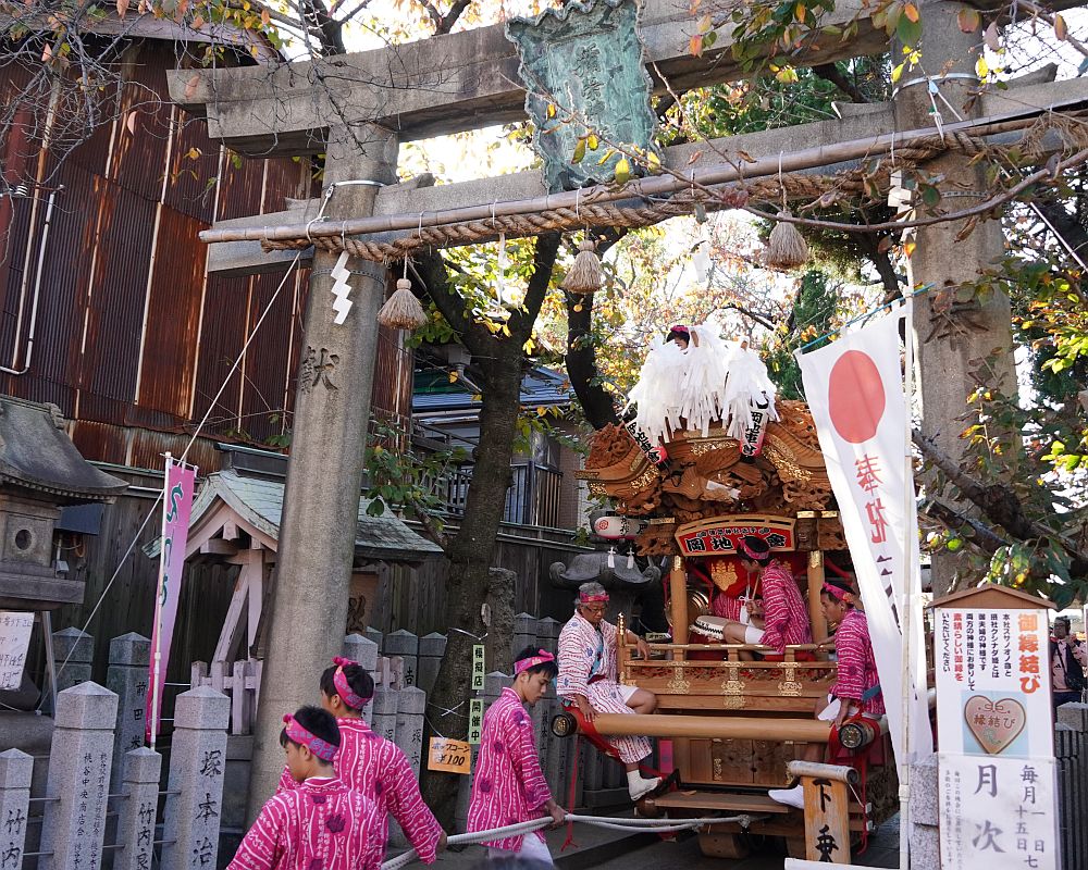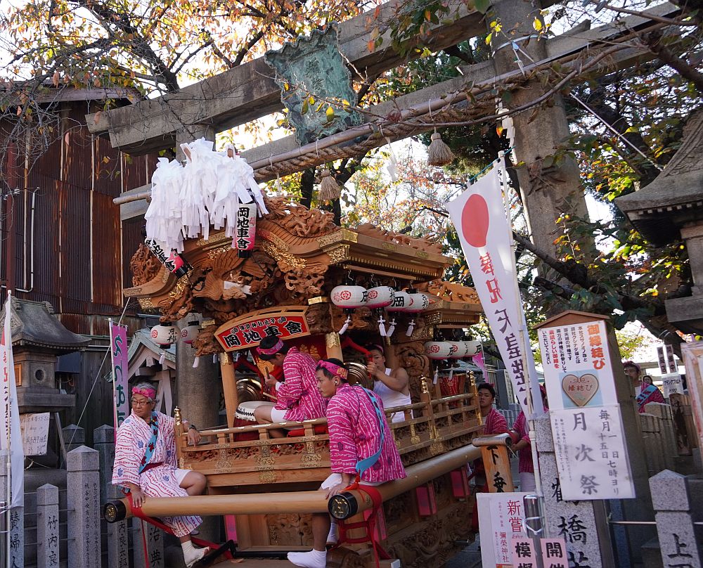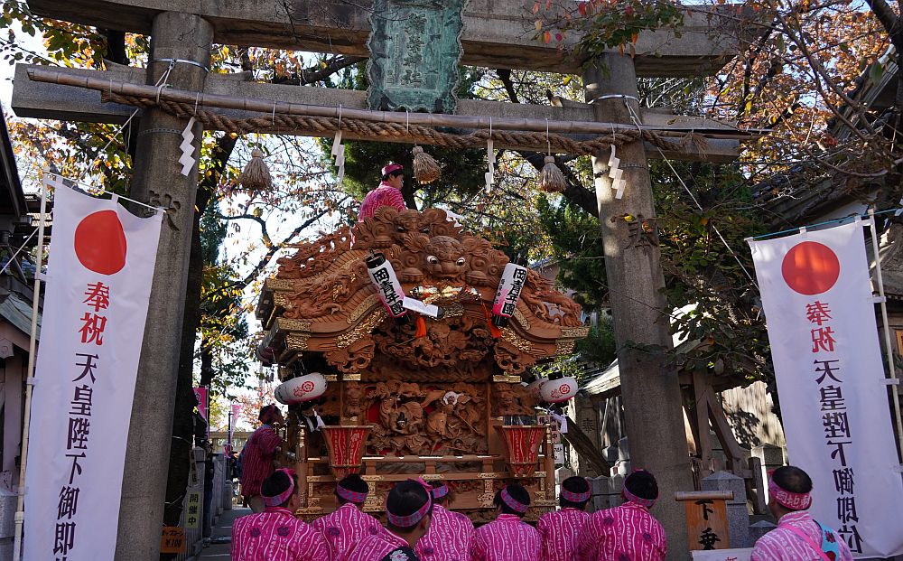 令和元年11月23日、生野区の大嘗祭奉祝単独曳行を見に行ってきました。 新天皇即位後に初めて行われる新嘗祭である大嘗祭をお祝いして、 生野区の全15台の地車が参加して奉祝曳行が行なわれました。 私は午後から生野区各地を自転車で走り回って、11台の地車を見て きました。 ここでは岡の単独曳行を紹介します。 岡 では、生野区の大嘗祭奉祝単独曳行画像その3:岡をご覧下さい。