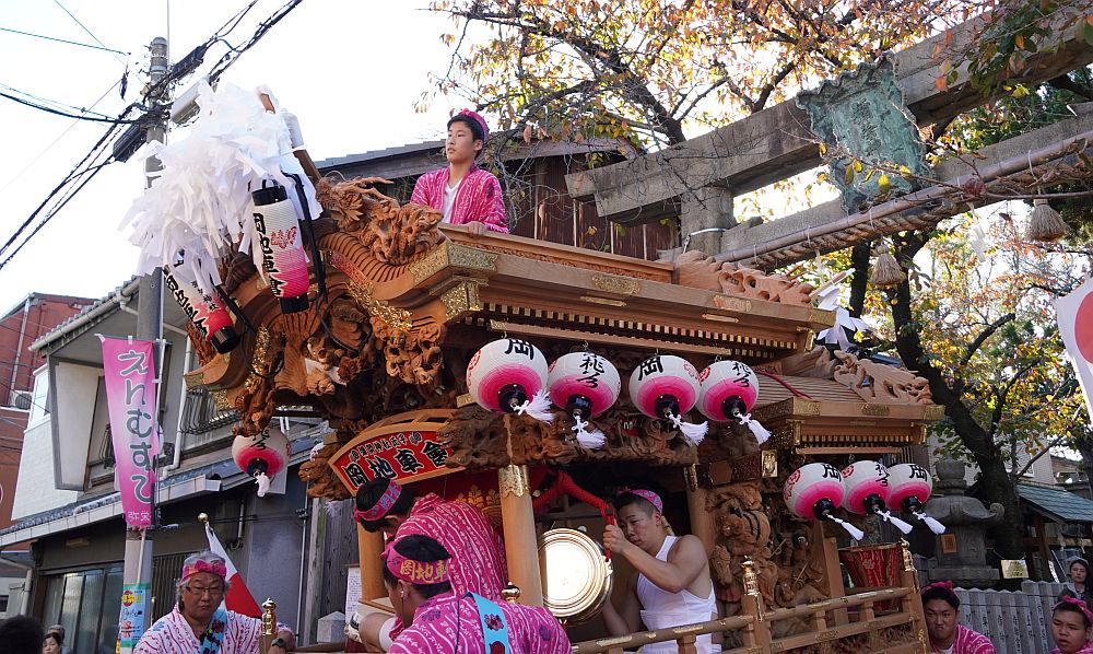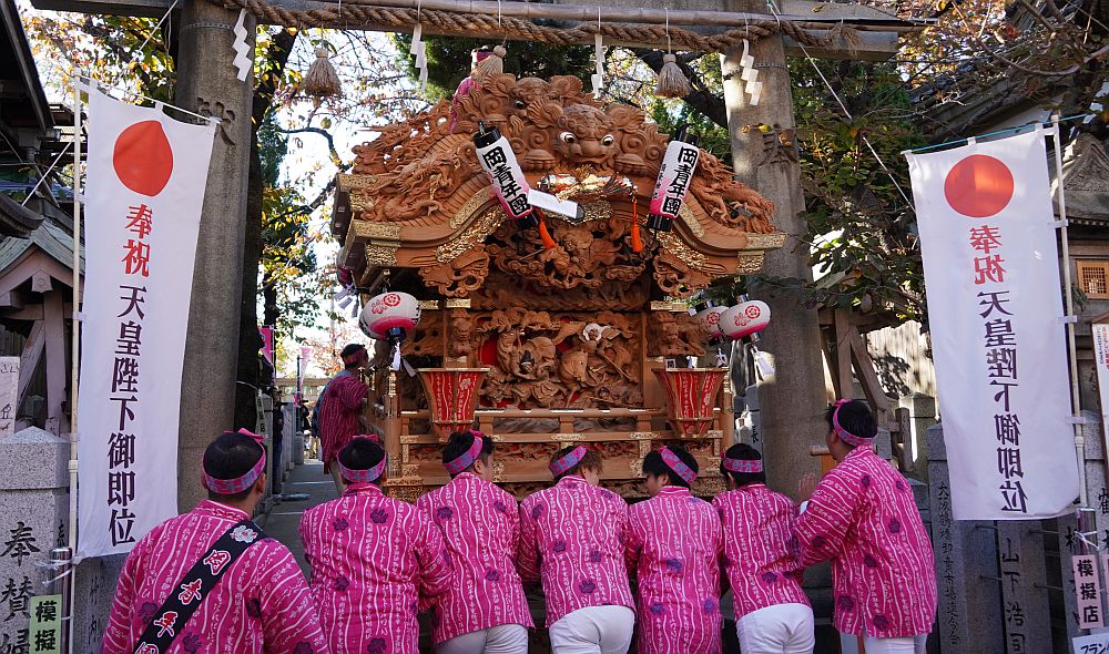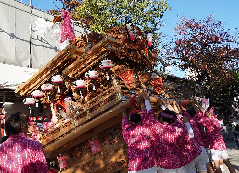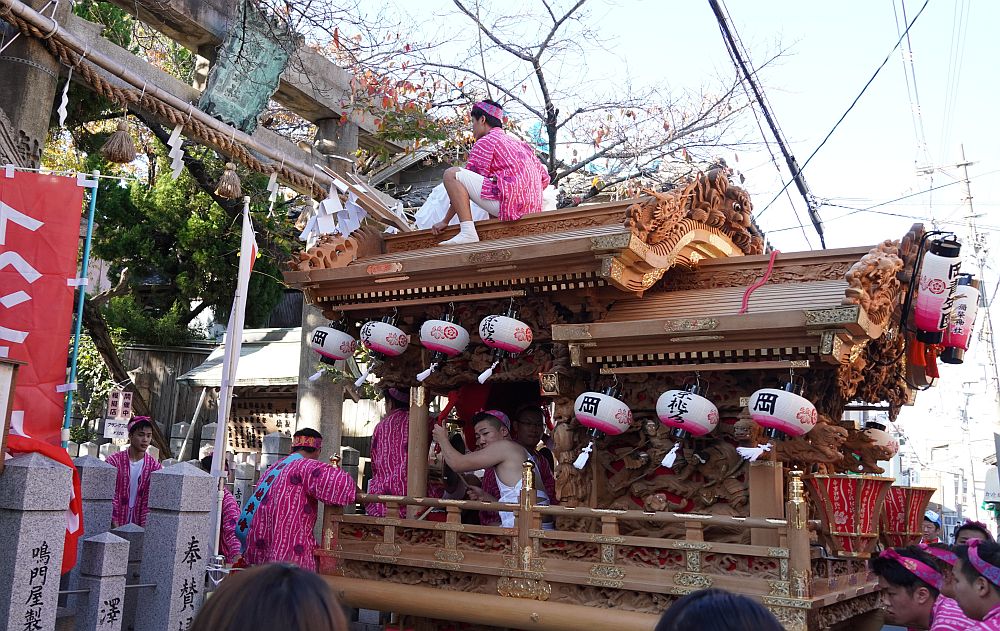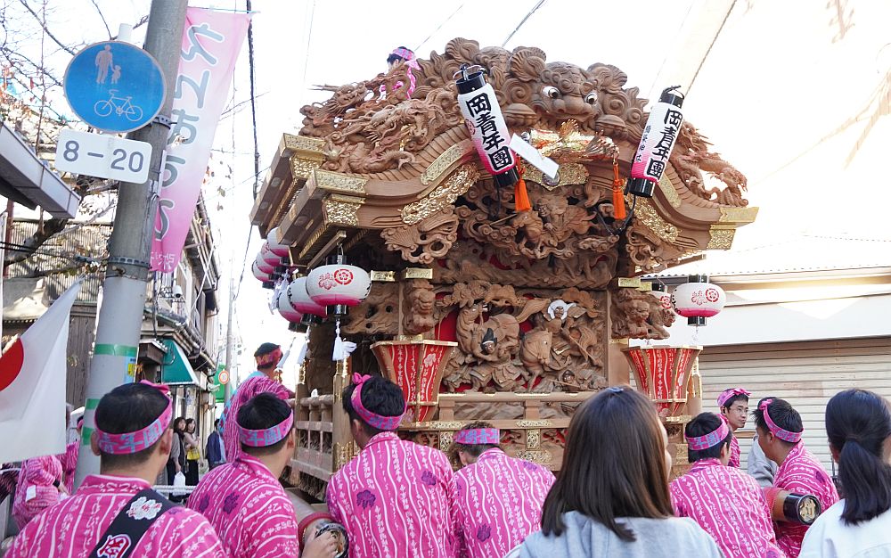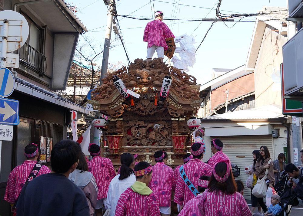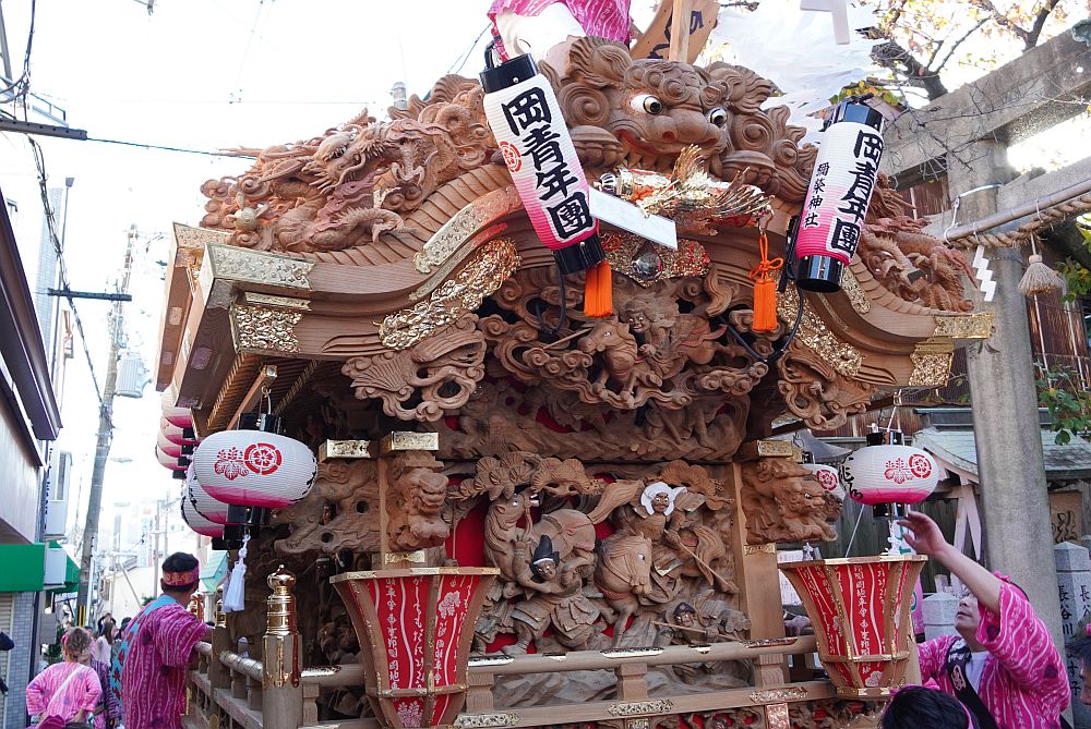 令和元年11月23日、生野区の大嘗祭奉祝単独曳行を見に行ってきました。 新天皇即位後に初めて行われる新嘗祭である大嘗祭をお祝いして、 生野区の全15台の地車が参加して奉祝曳行が行なわれました。 私は午後から生野区各地を自転車で走り回って、11台の地車を見て きました。 ここでは岡の単独曳行を紹介します。 岡 では、生野区の大嘗祭奉祝単独曳行画像その3:岡をご覧下さい。