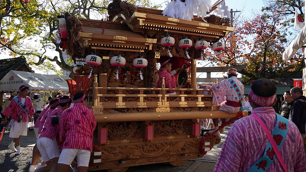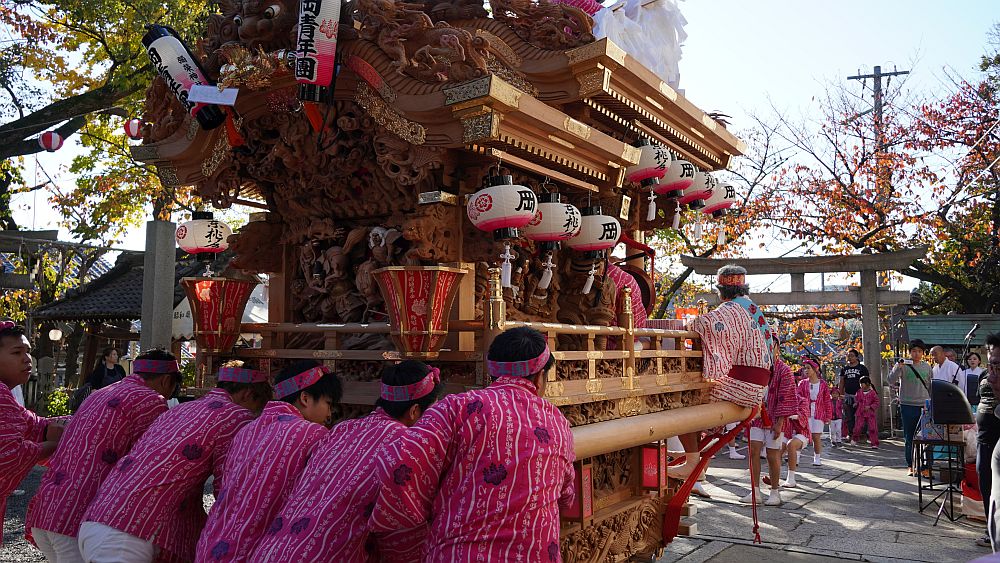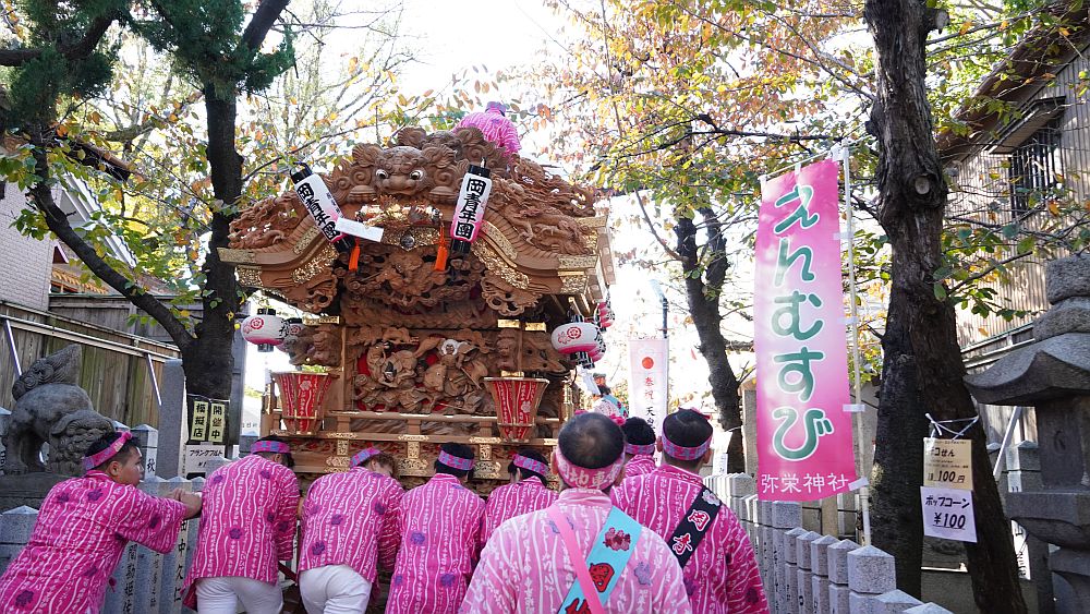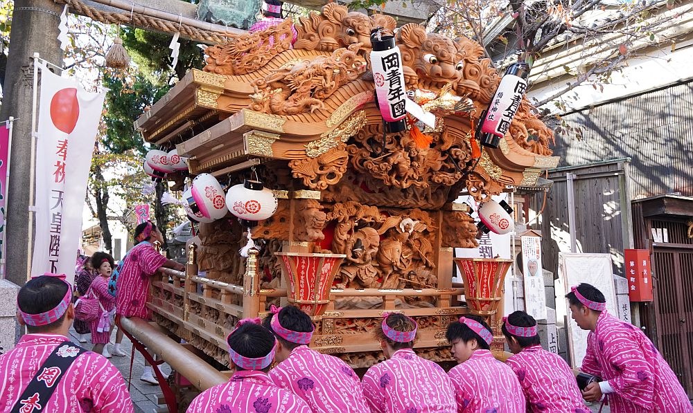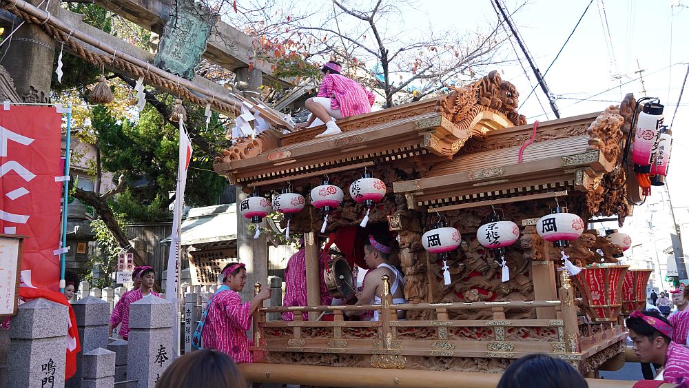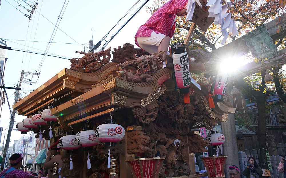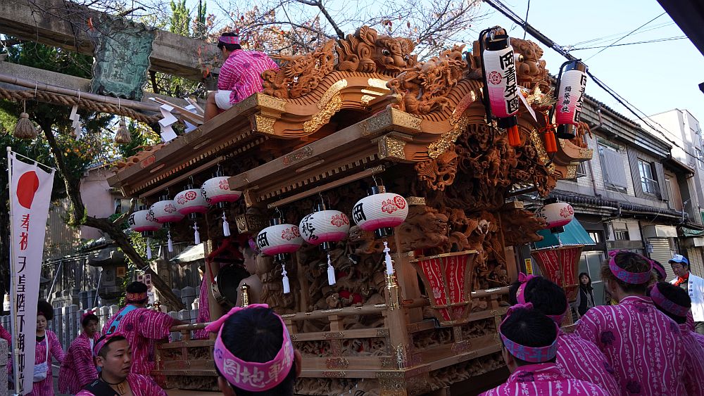 令和元年11月23日、生野区の大嘗祭奉祝単独曳行を見に行ってきました。 新天皇即位後に初めて行われる新嘗祭である大嘗祭をお祝いして、 生野区の全15台の地車が参加して奉祝曳行が行なわれました。 私は午後から生野区各地を自転車で走り回って、11台の地車を見て きました。 ここでは岡の単独曳行を紹介します。 岡 では、生野区の大嘗祭奉祝単独曳行画像その3:岡をご覧下さい。