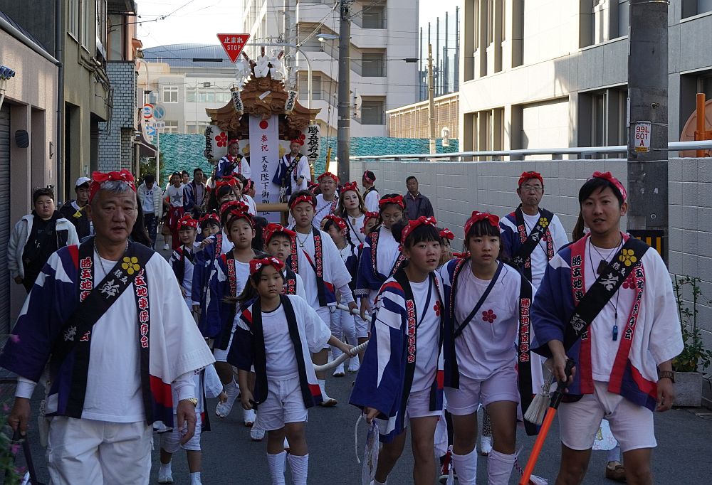 令和元年11月23日、生野区の大嘗祭奉祝曳行を見に行ってきました。 新天皇即位後に初めて行われる新嘗祭である大嘗祭をお祝いして、 生野区の全15台の地車が参加して奉祝曳行が行なわれました。 私は午後から生野区各地を自転車で走り回って、11台の地車を見て きました。 ここでは御勝山南公園横での田嶋と勝五の合わせ画像を紹介します。 勝五1、田嶋1、勝五2、記念撮影、手打ち、出発 では、生野区の大嘗祭奉祝曳行画像その3:田嶋・勝五をご覧下さい。
