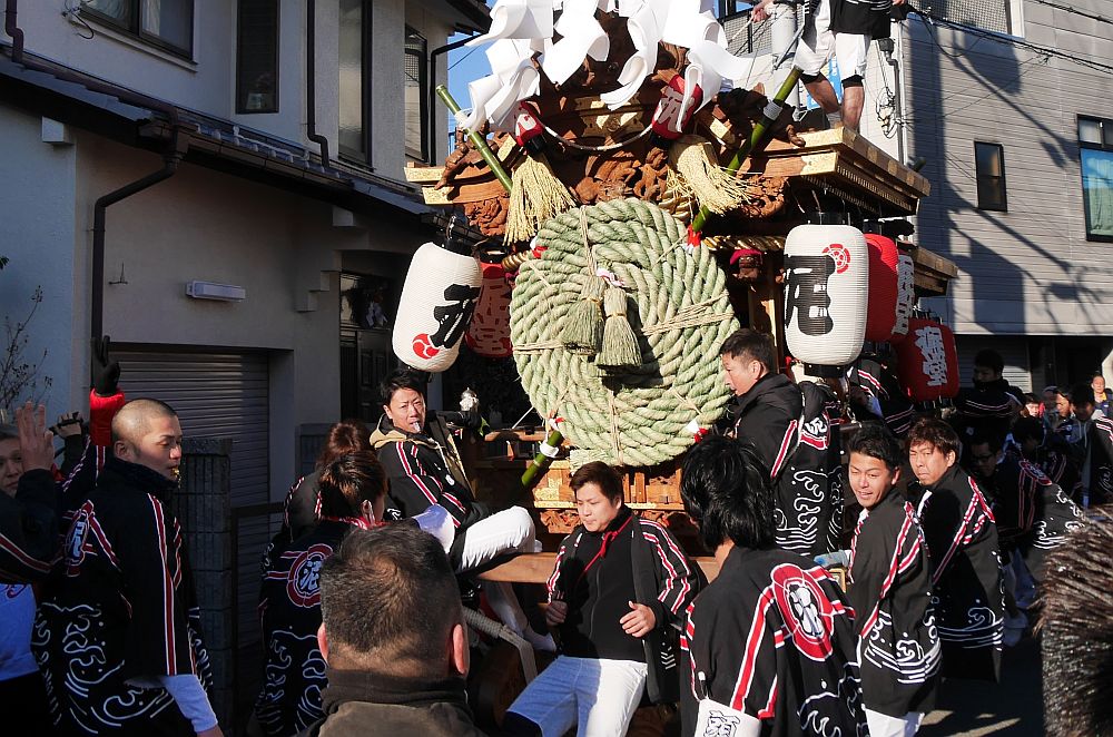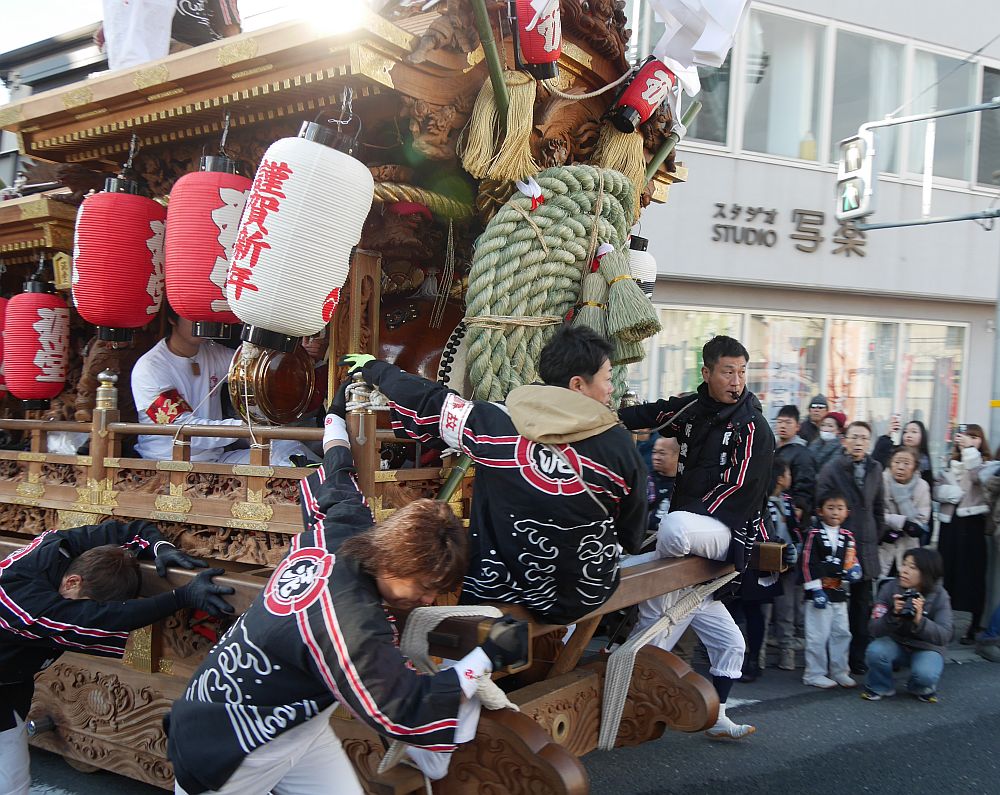 その後も何度も宮前交差点へ突っこんでいく泥堂町地車