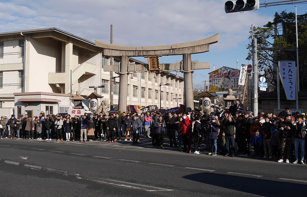 鳥居前で後ろを担ぎ上げて何度も礼してます♪