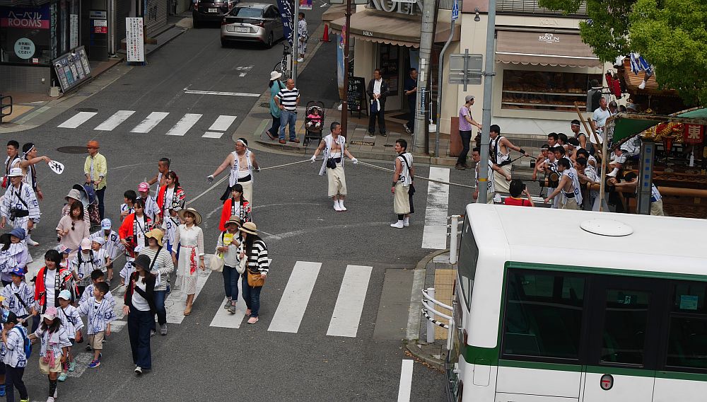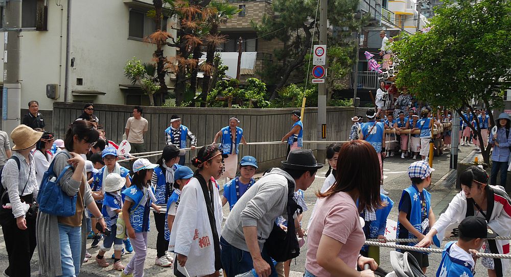 たくさんの子供たちが大きな声とともに綱を曳いてます。