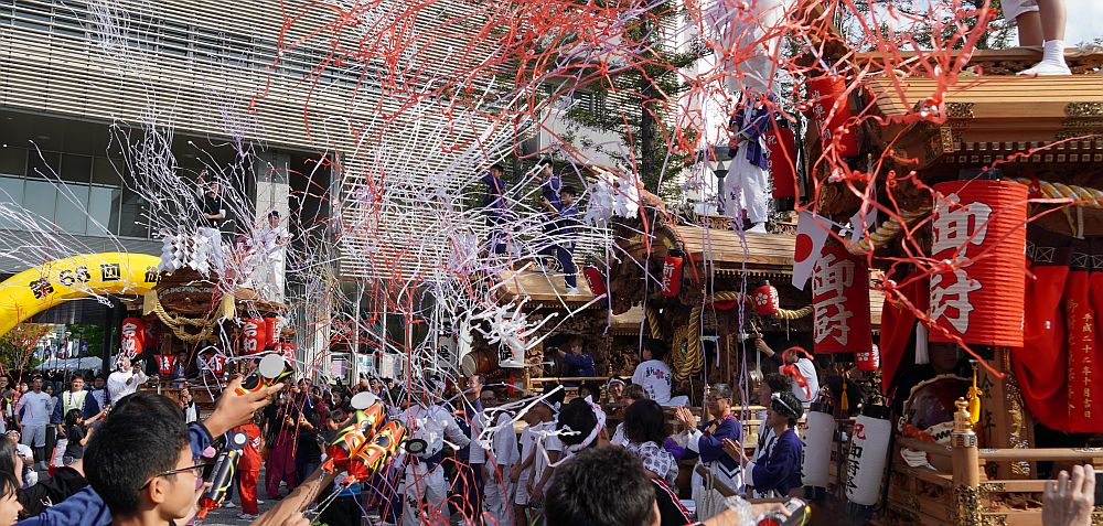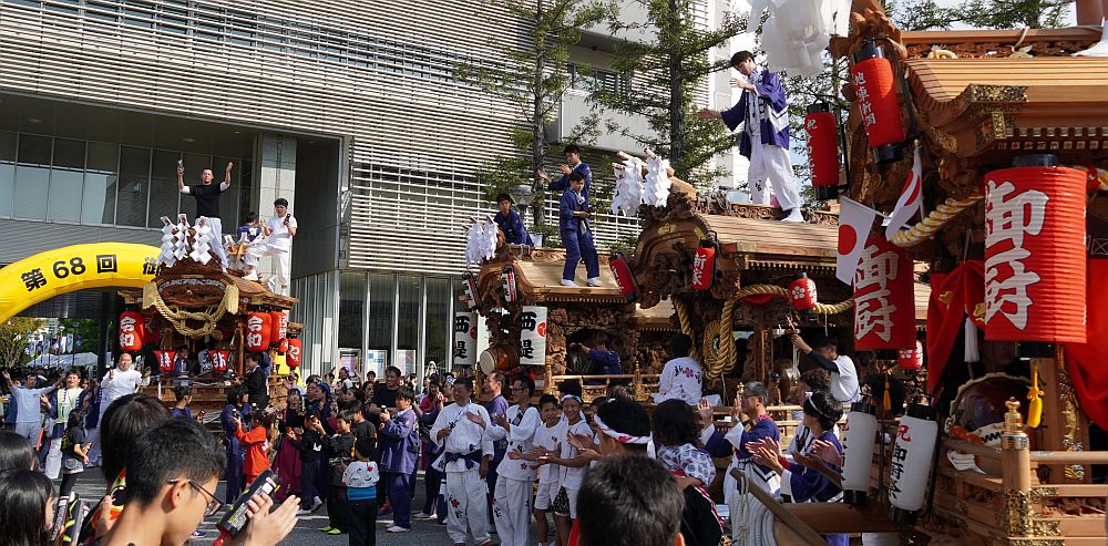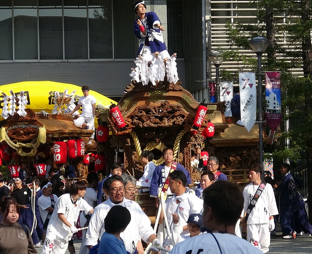 令和元年10月27日、東大阪市の御厨祭小阪駅前パレードを見に行ってきました。 大阪商業大学学園祭「御厨祭」に今年も近隣の4台の地車が参加して 学園祭を盛り上げていました。 私は今年は久しぶりに午後の小阪駅前パレードを見に行って来ました。 お囃子披露、手打ち、出発、商大新館角 では、東大阪市の御厨祭小阪駅前パレード画像その1をご覧下さい。