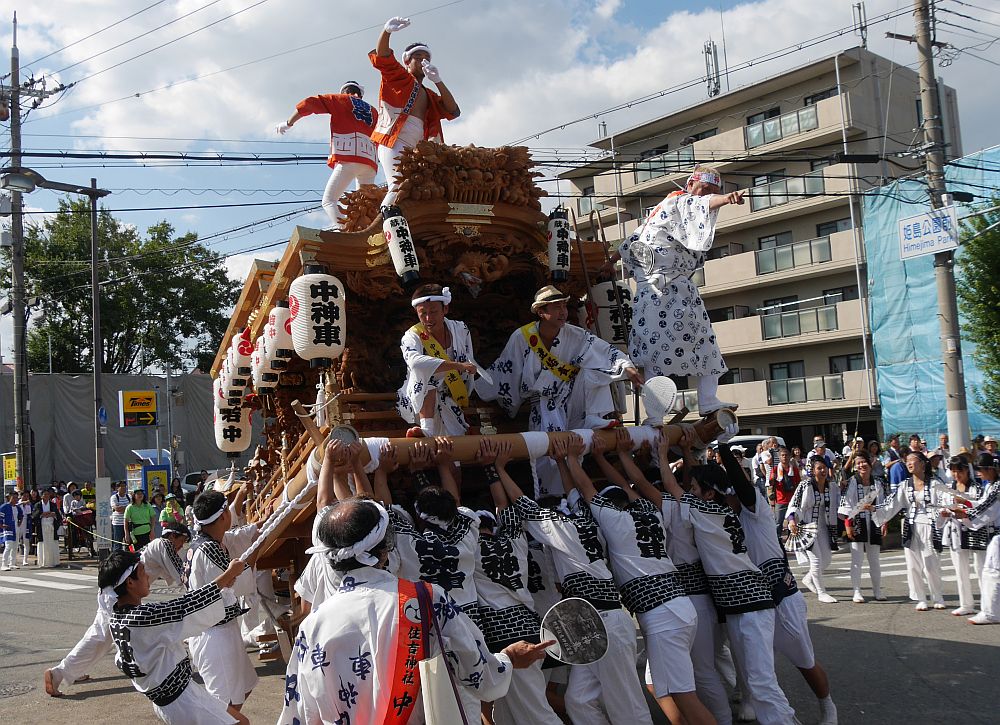 地車のパフォーマンスは最初に東之町、中神車、姫嶋(大)の3台が登場