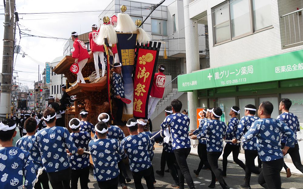 鳳地区大鳥と野田の2台の地車が参加して、夏休み最後の日曜日の恒例行事、