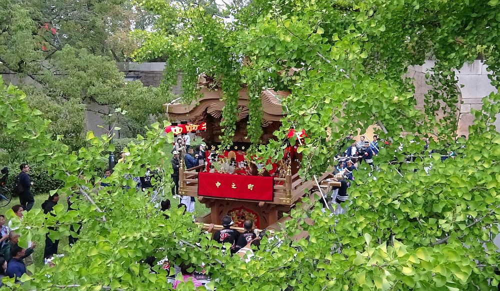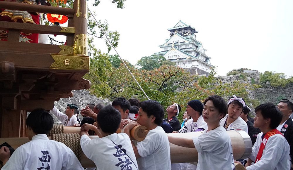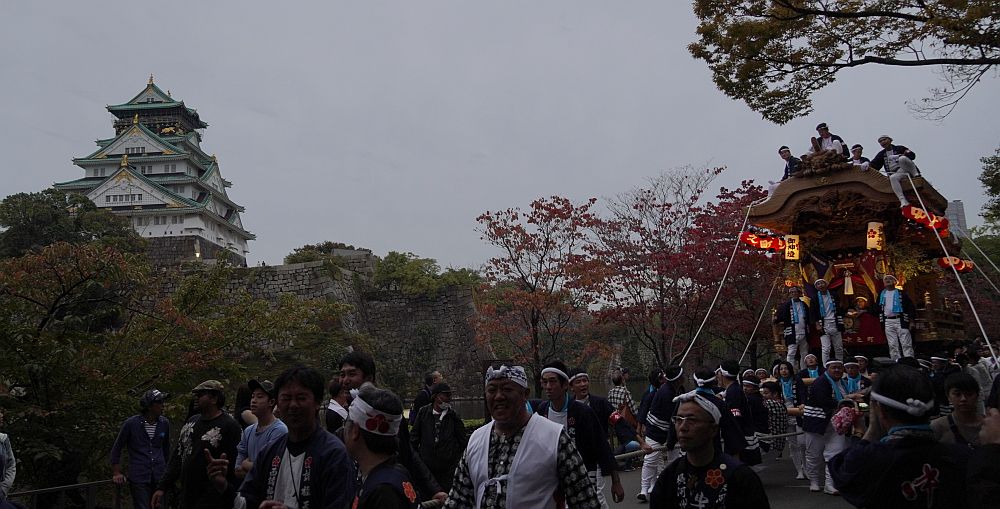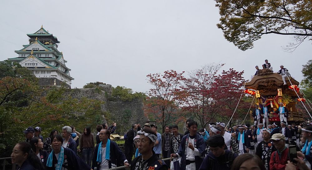 大阪城内曳行、大阪城天守閣と地車、極楽橋前