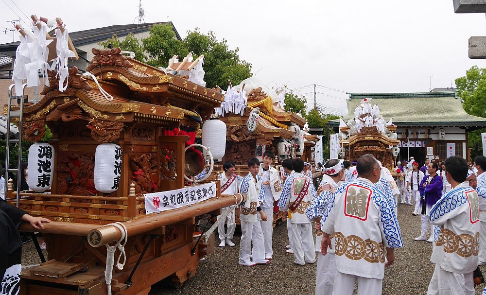 成和地区の5町地車が産土神社に集結後に祝賀曳行が行われるようで