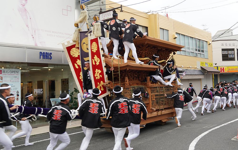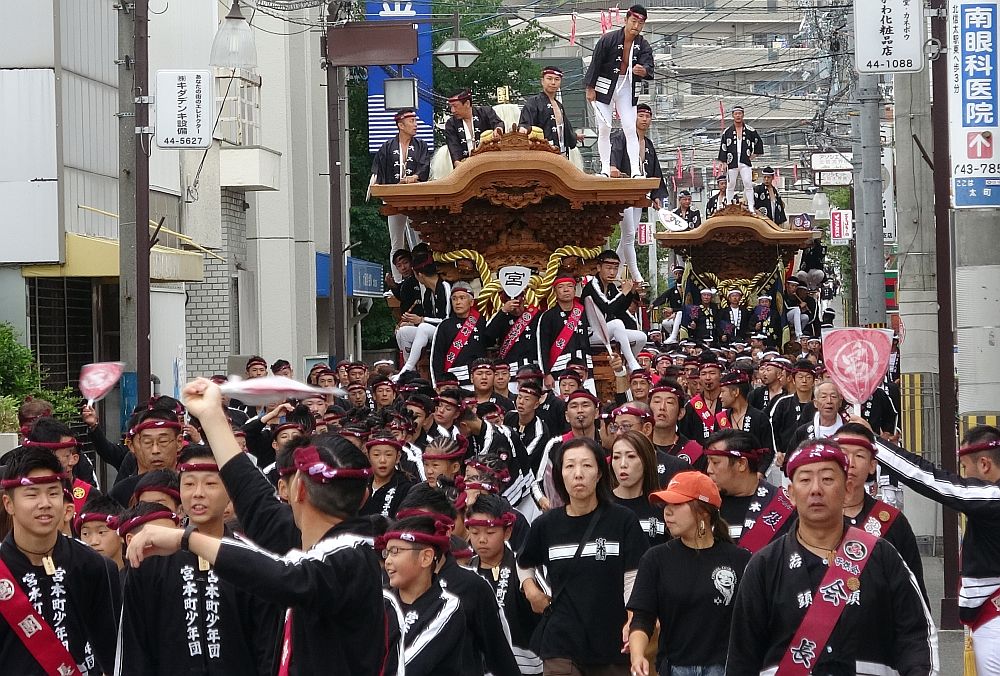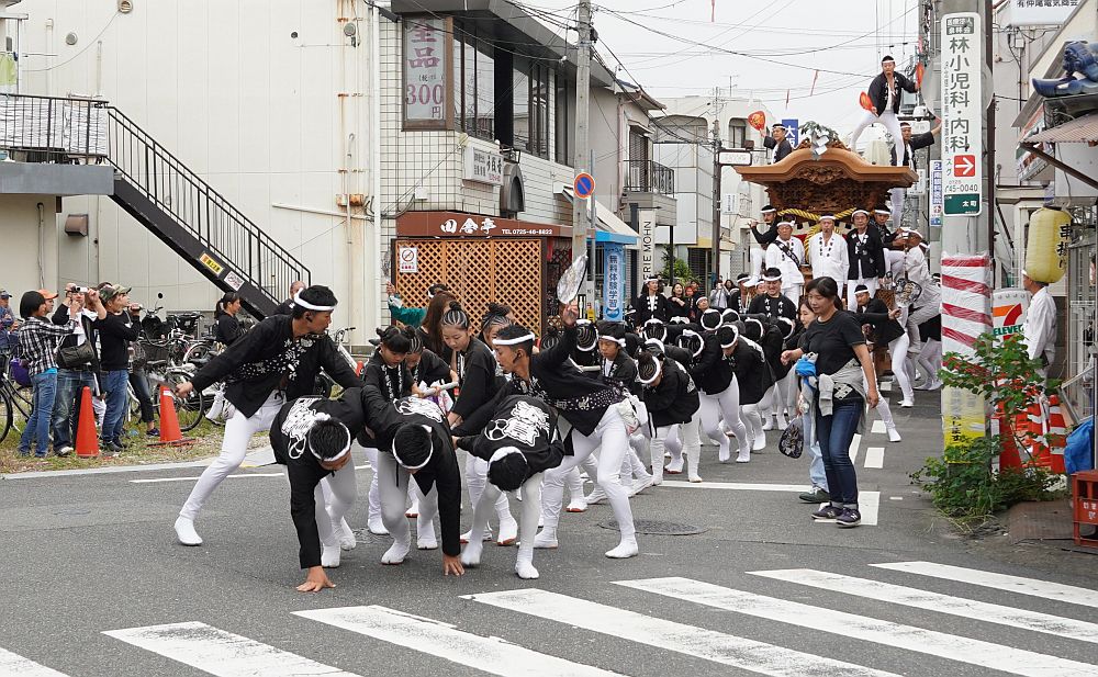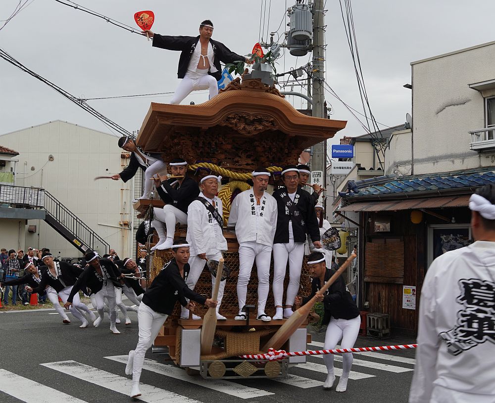 では、和泉市の信太地区連合曳き画像その1:北信太駅前1をご覧下さい。