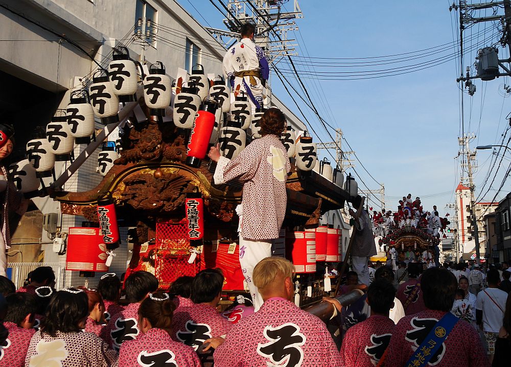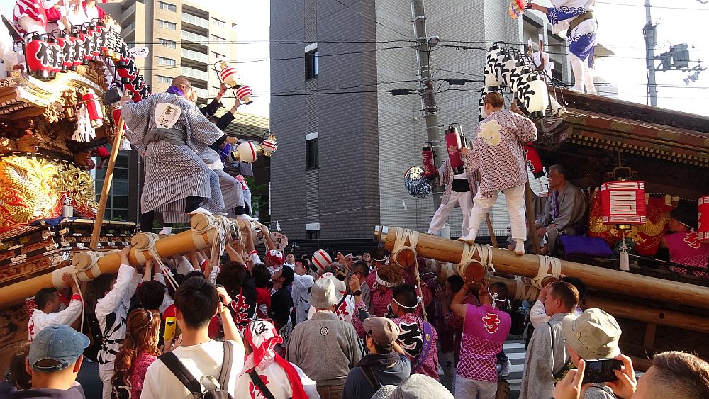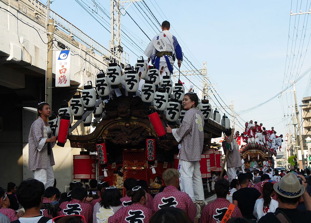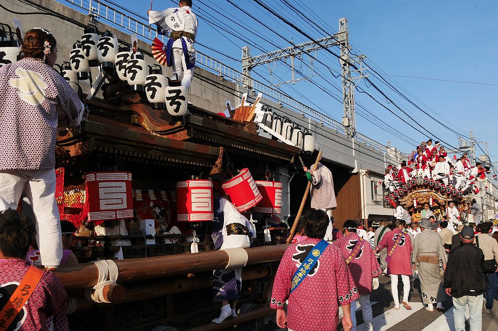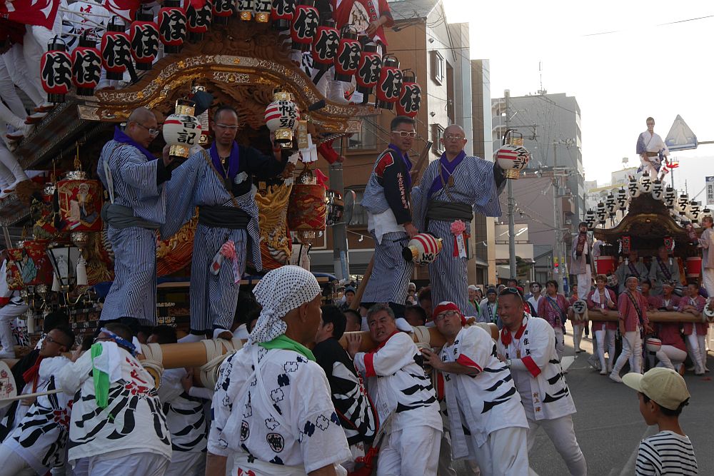 2台の地車が向かい合って