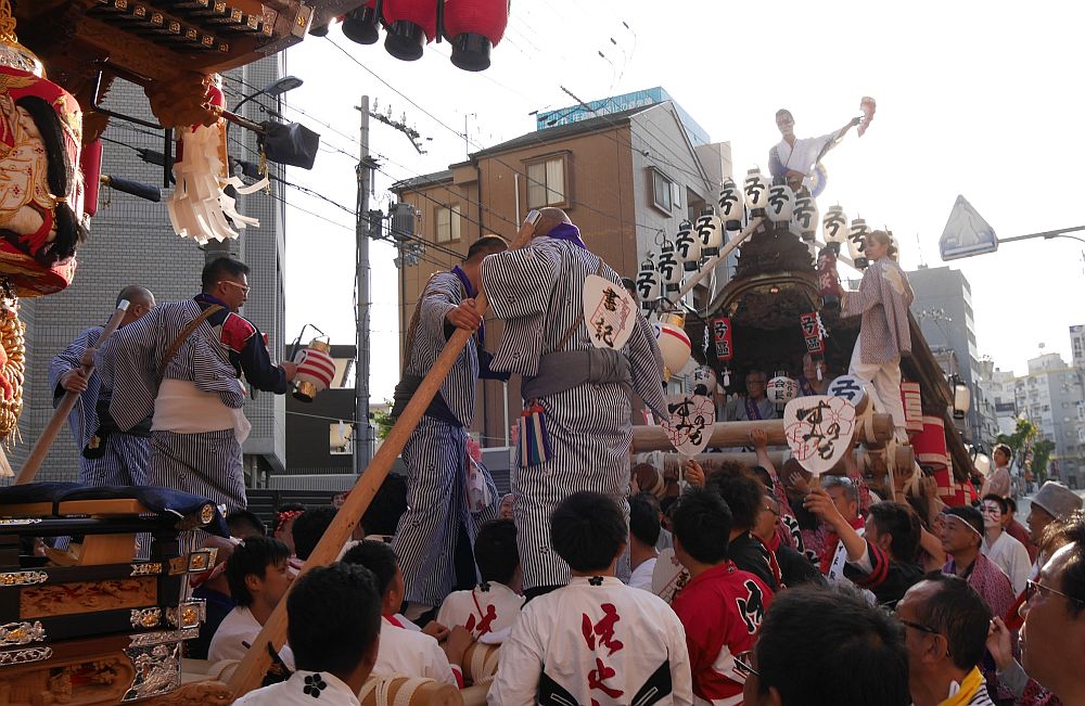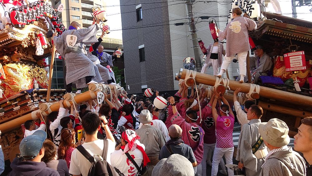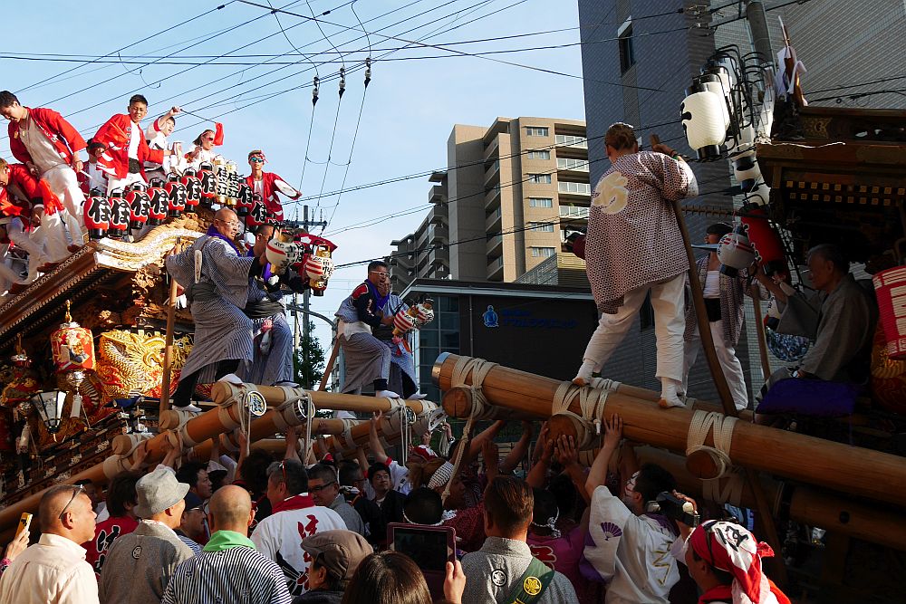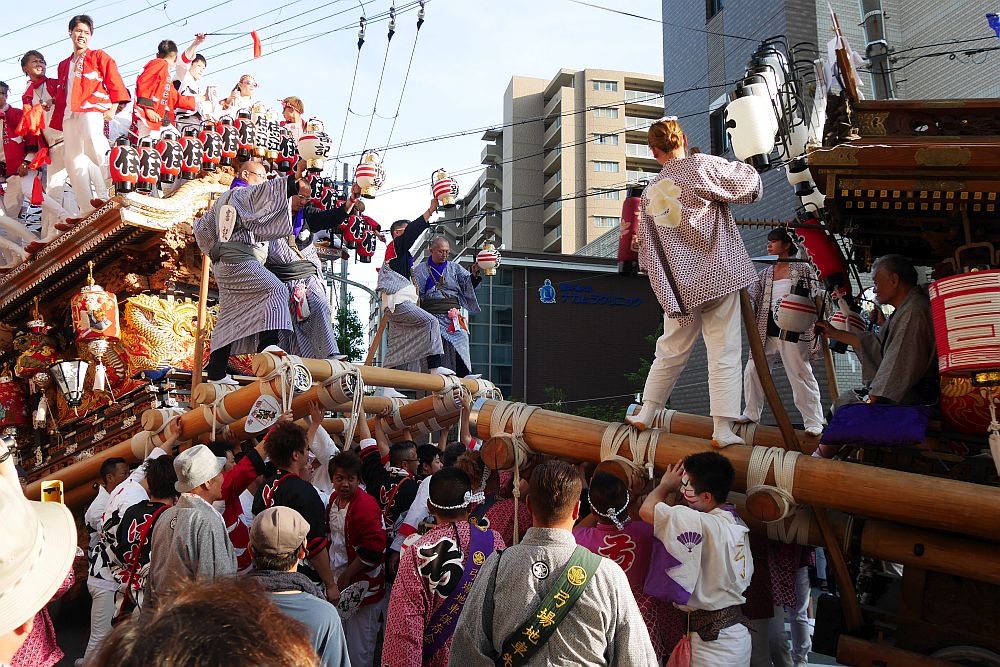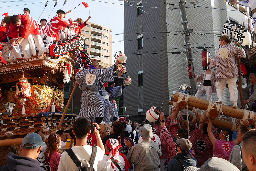 2台の地車が向かい合って