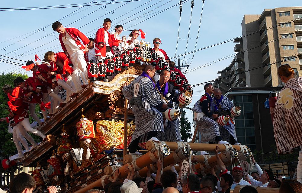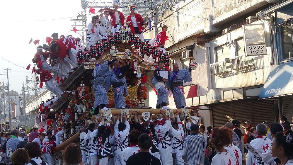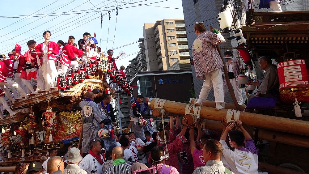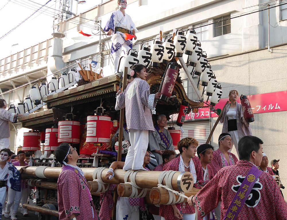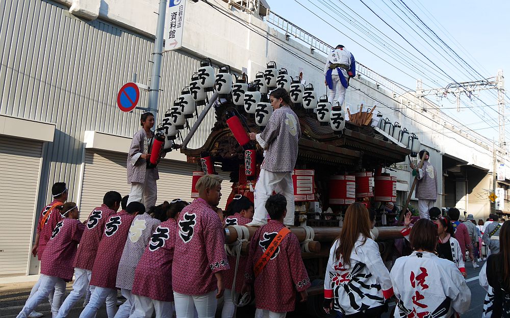 前を担ぎ上げて待つ弓場地車