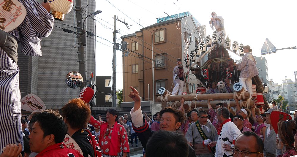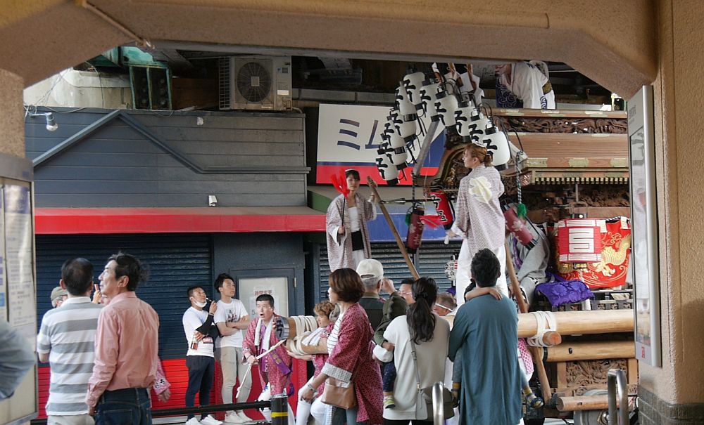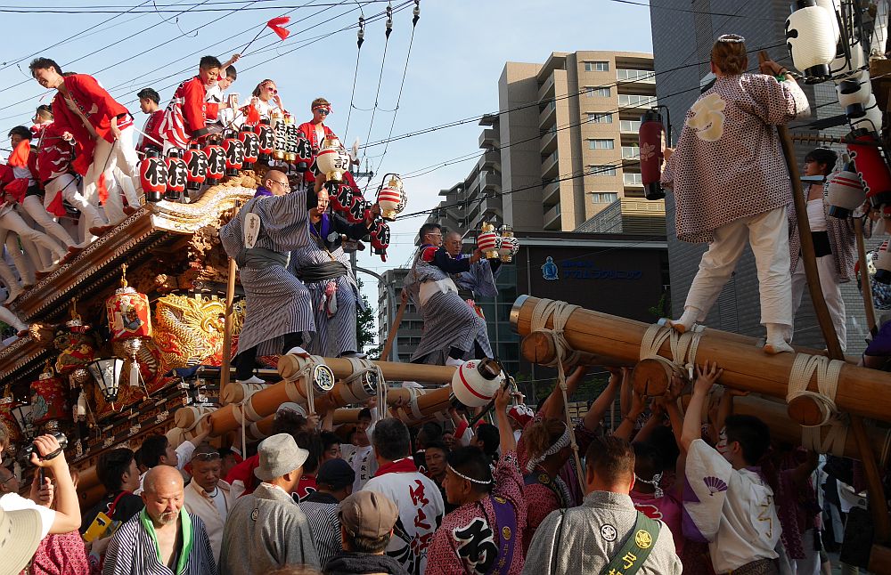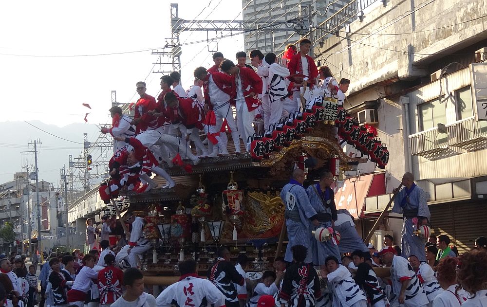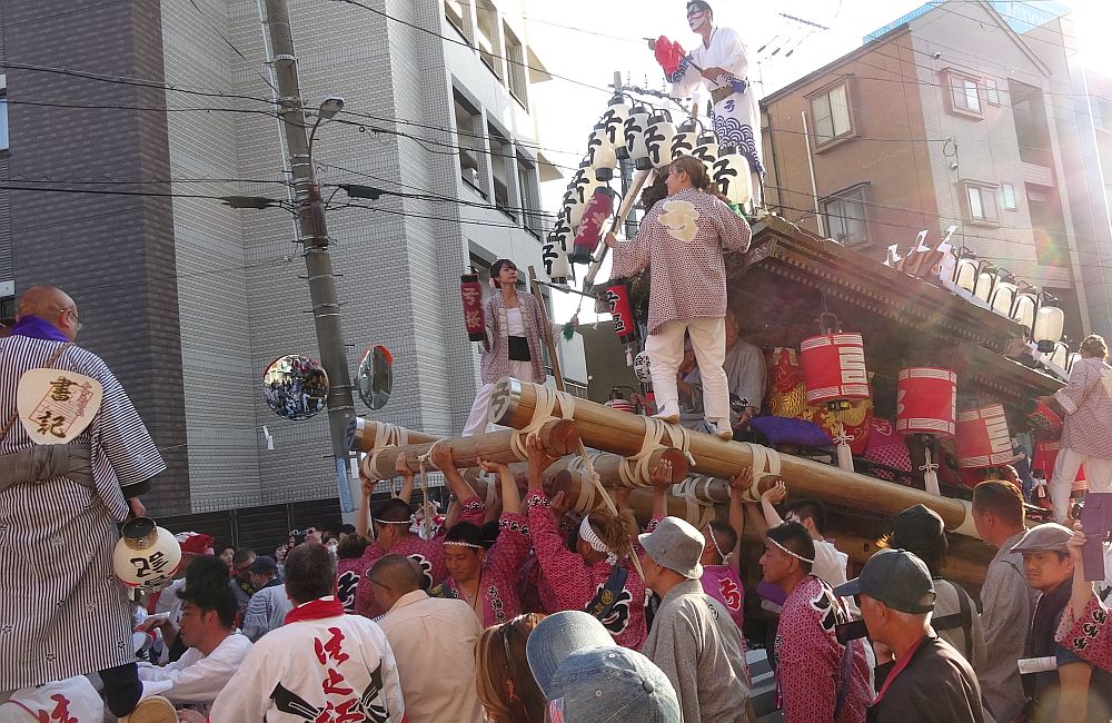 前を担ぎ上げて待つ弓場地車