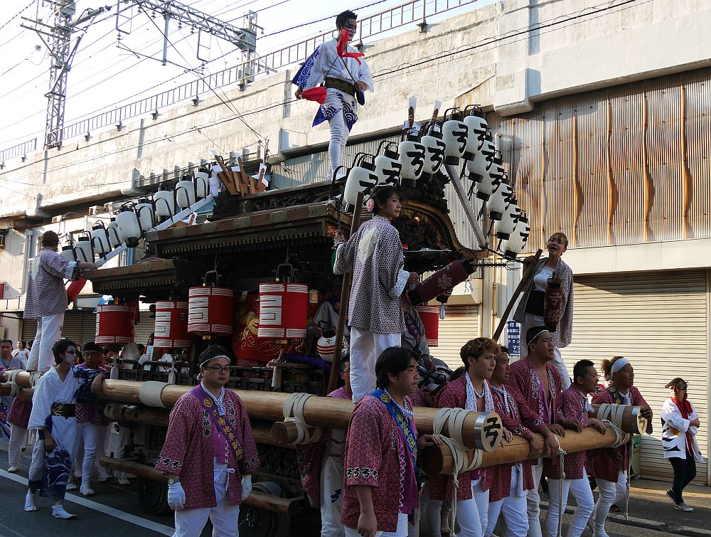 阪神住吉駅前の高架下を進む弓場地車