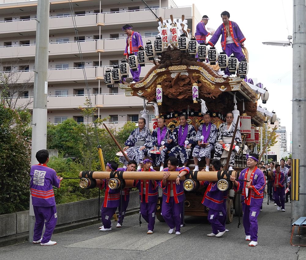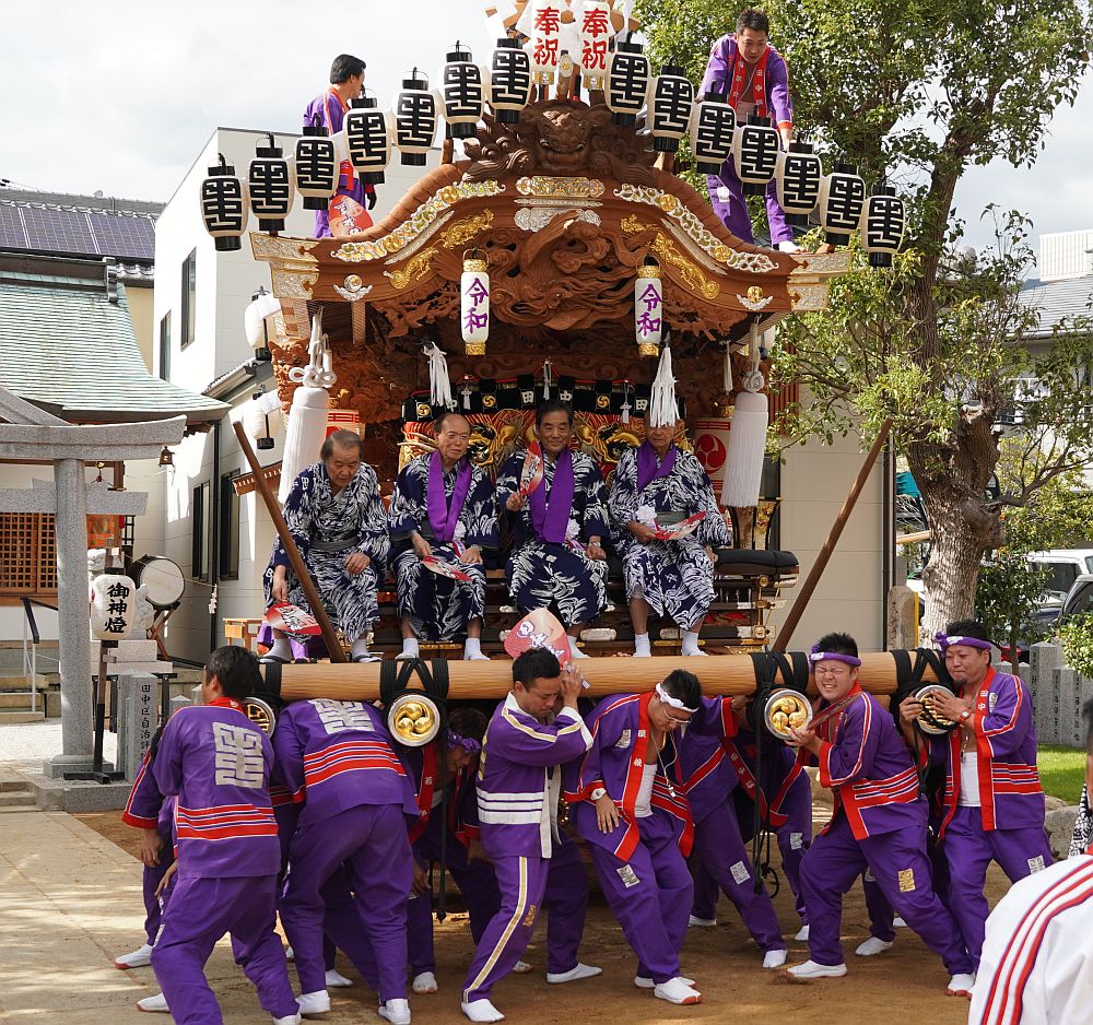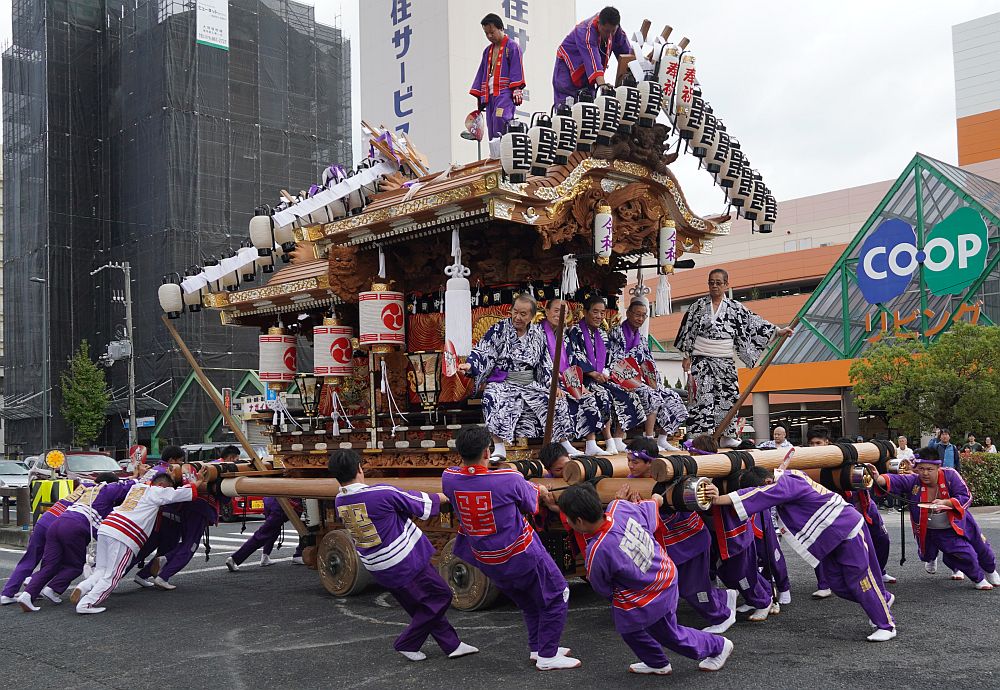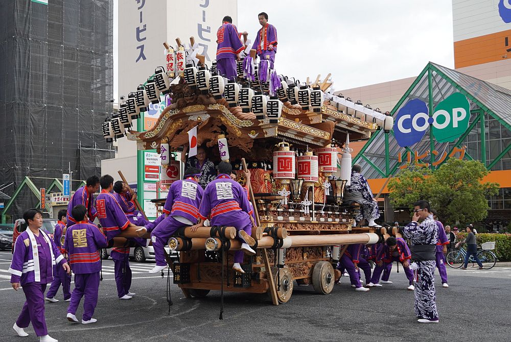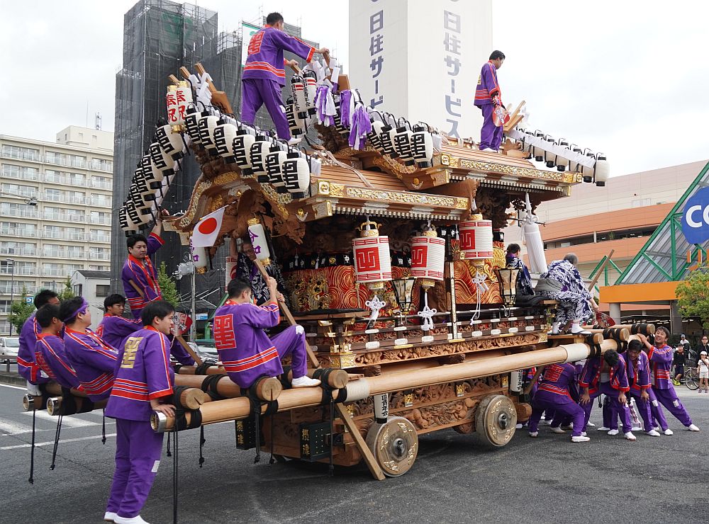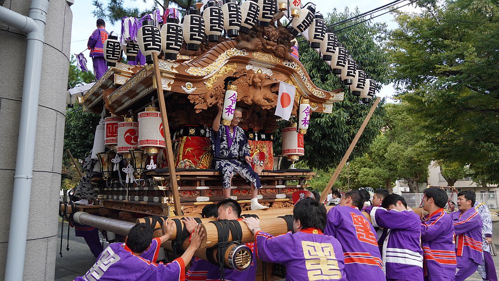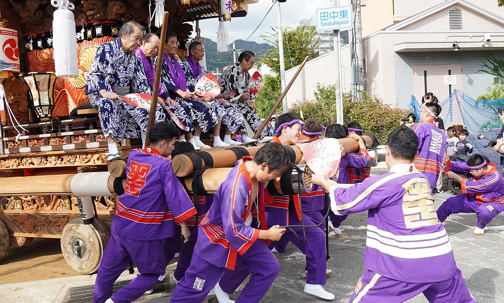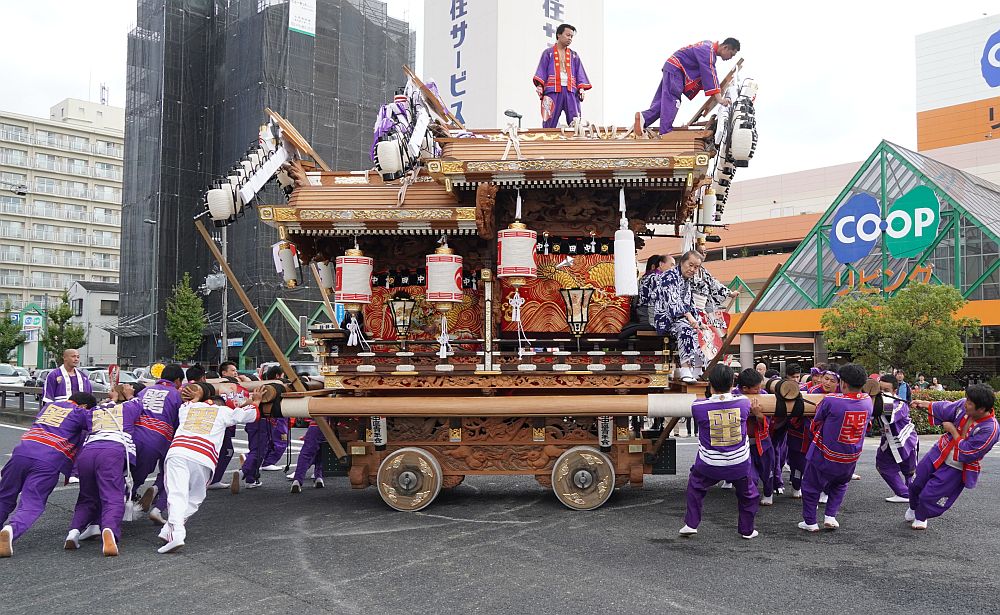 田中地車に役員さんが乗り込み、鳴り物が始まりました。