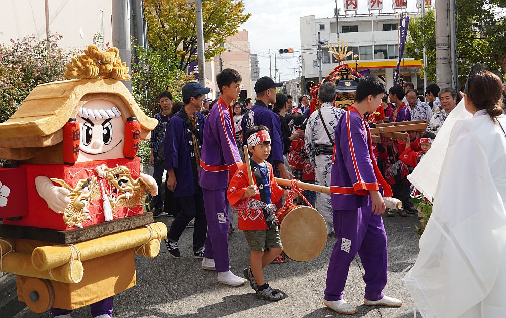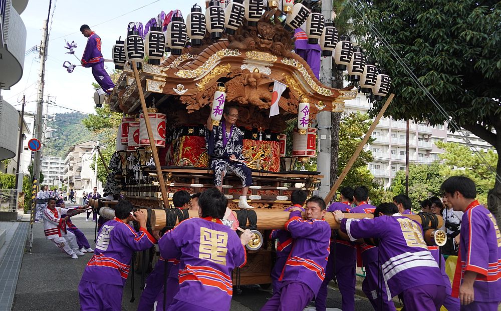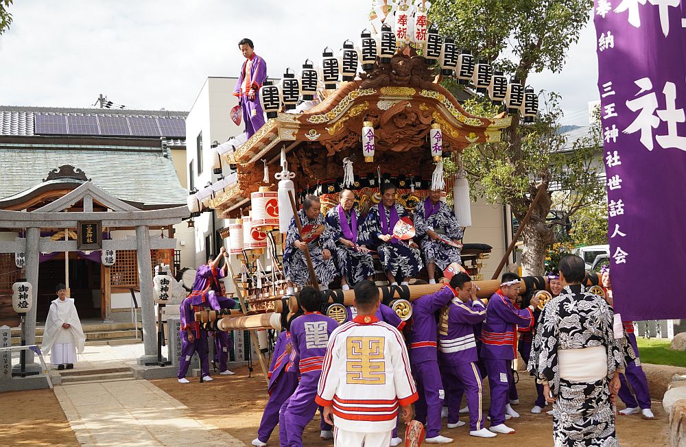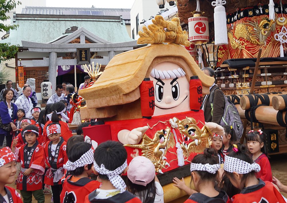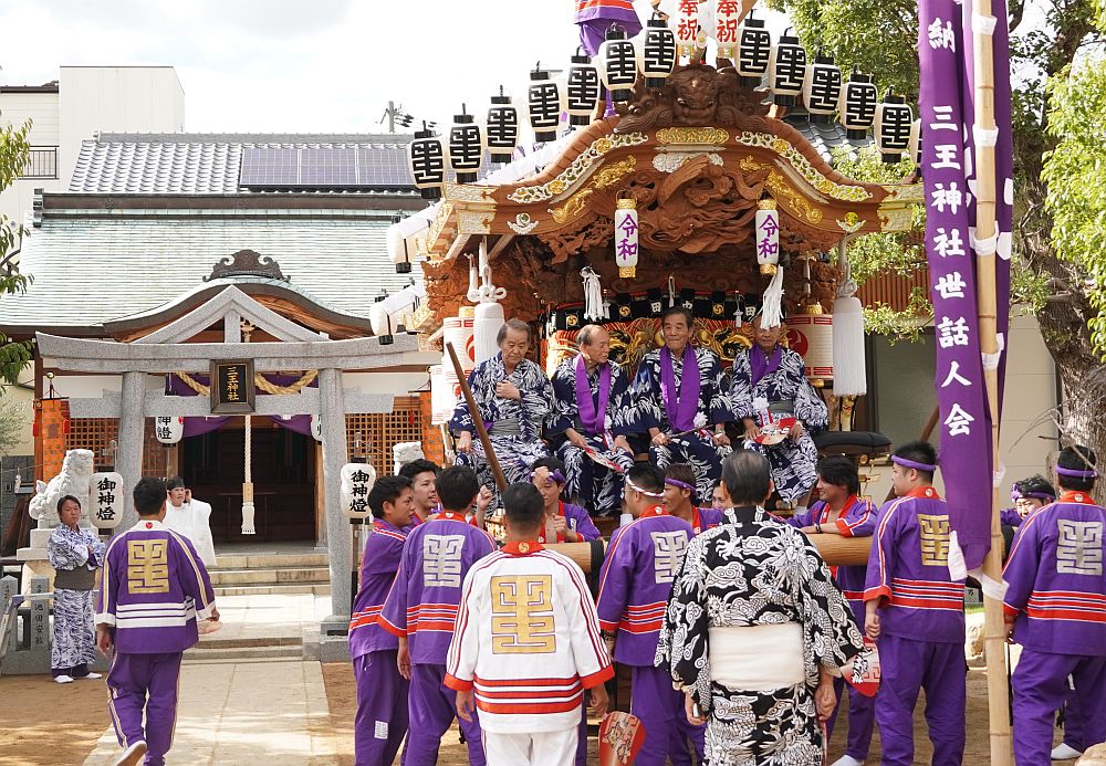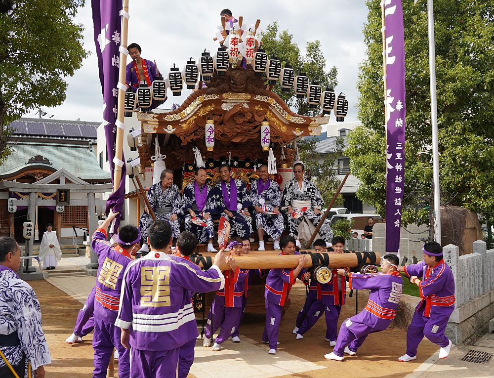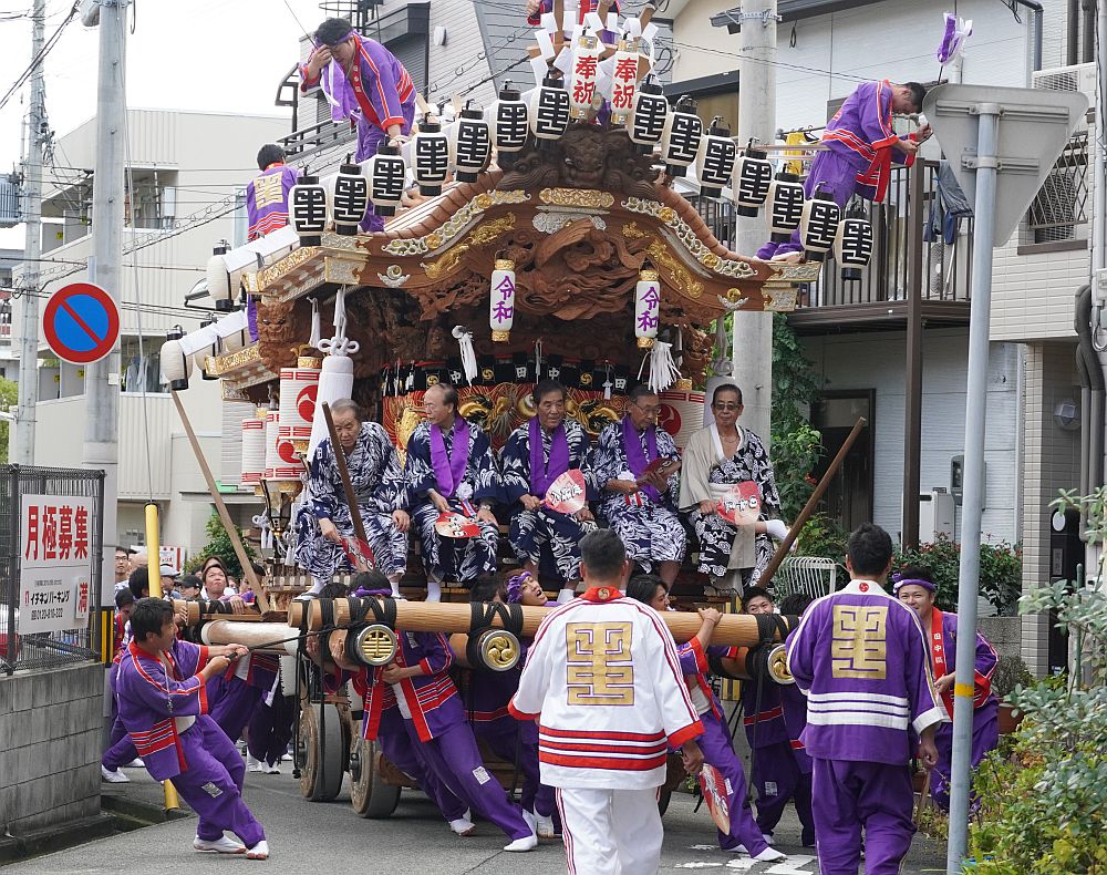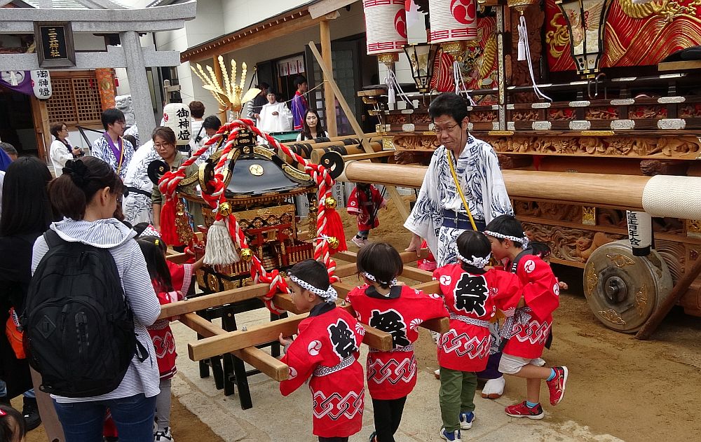 田中地車に役員さんが乗り込み、鳴り物が始まりました。