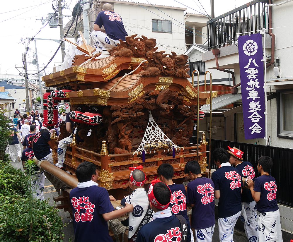 秋祭りには地車パレードや宮入が盛大に行われる八雲神社祭礼。