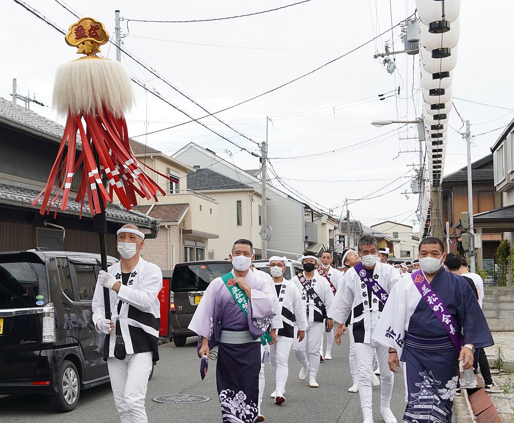 宮入時にだんじりの前に飾る提灯を持っての宮入です。