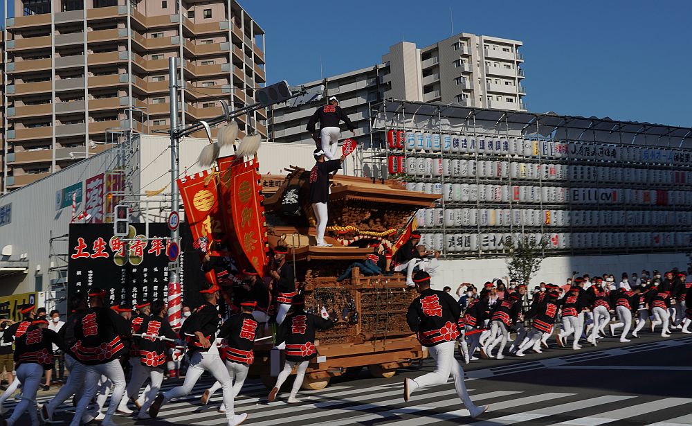 ここではセレモニー後の土生町地車、極楽寺町地車の曳行画像を紹介します。