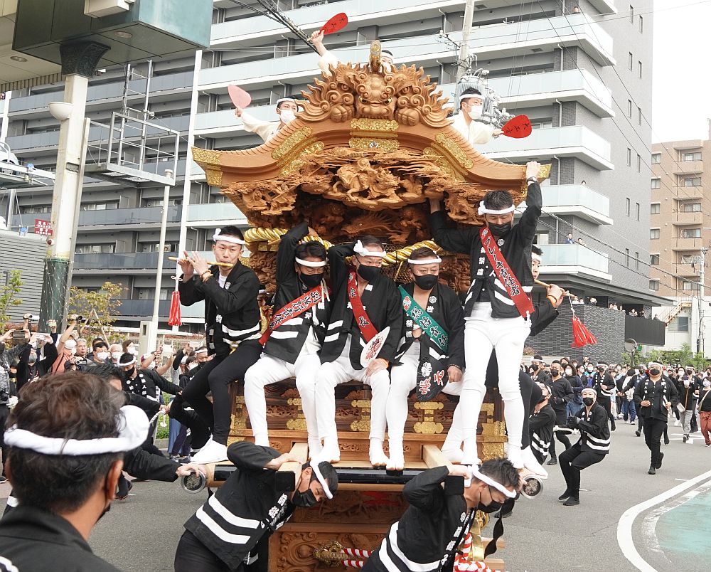 令和4年4月29日、泉大津市濱八町の宮本町地車入魂式お披露目曳行を見に行ってきました。