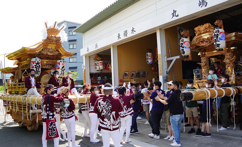 7連小屋の各町地車も小屋を開けてお祝いです。