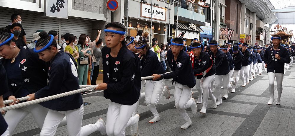 令和4年9月18日、岸和田だんじり祭本宮を見に行ってきました。 令和4年の岸和田だんじり祭は3年振りの通常開催でした。 私も気合い入れて、ブレーキテストから試験曳き2回、宵宮、そして本宮まで ほぼフルコースで見物してきました。 本宮午前曳行見物後、商店街まで戻って昼食。 その後、昼イチは商店街曳行を見物してきました。 では、岸和田だんじり祭本宮画像その4:商店街曳行をご覧下さい。