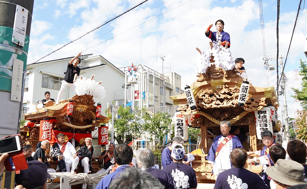 なんとすでに3町地車が神社近くで待機していて、すぐに西堤地車が動き