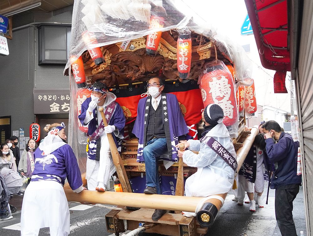 桃谷商店街を左折して桜通りを南へ向かう鶴橋地車