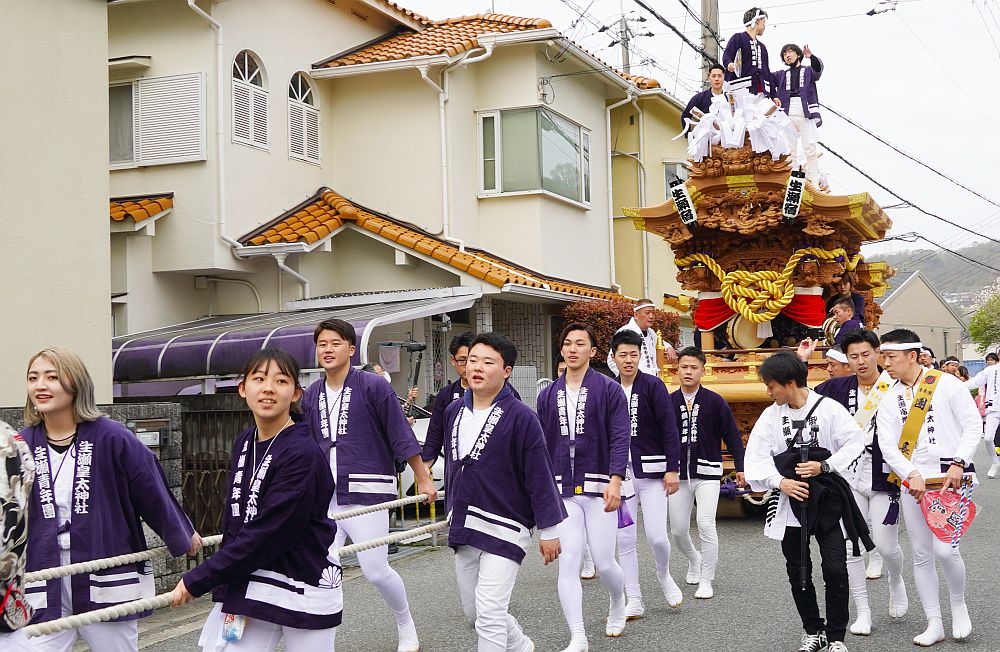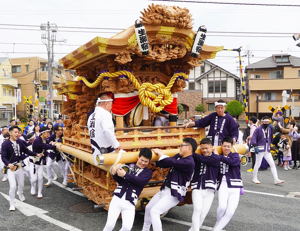 令和5年3月25日、西宮市の生瀬地車お披露目曳行を見に行ってきました。 生瀬地車の令和の大改修お披露目曳行に川面西地車と大市太鼓も お祝いに駆けつけて、生瀬・川面西・大市3町合同曳行が行われました。 ここからは画像で合同曳行を紹介します。 まずはぶどう池出発〜川面西地車合流〜JR踏切横断〜宝塚駅ロータリー 通過までの画像です。 では、西宮市の生瀬地車お披露目曳行その1をご覧下さい。