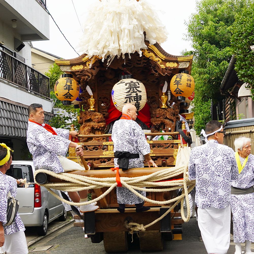 塞神社にご奉仕する塞神講の方々により曳行されています。